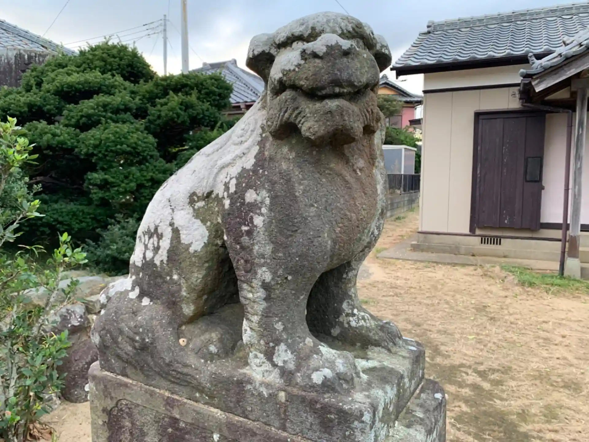 十字路にある神社。狛犬の台座には「ヤマサ醤油」の文字があり、醤油造りに縁があることがわかります。