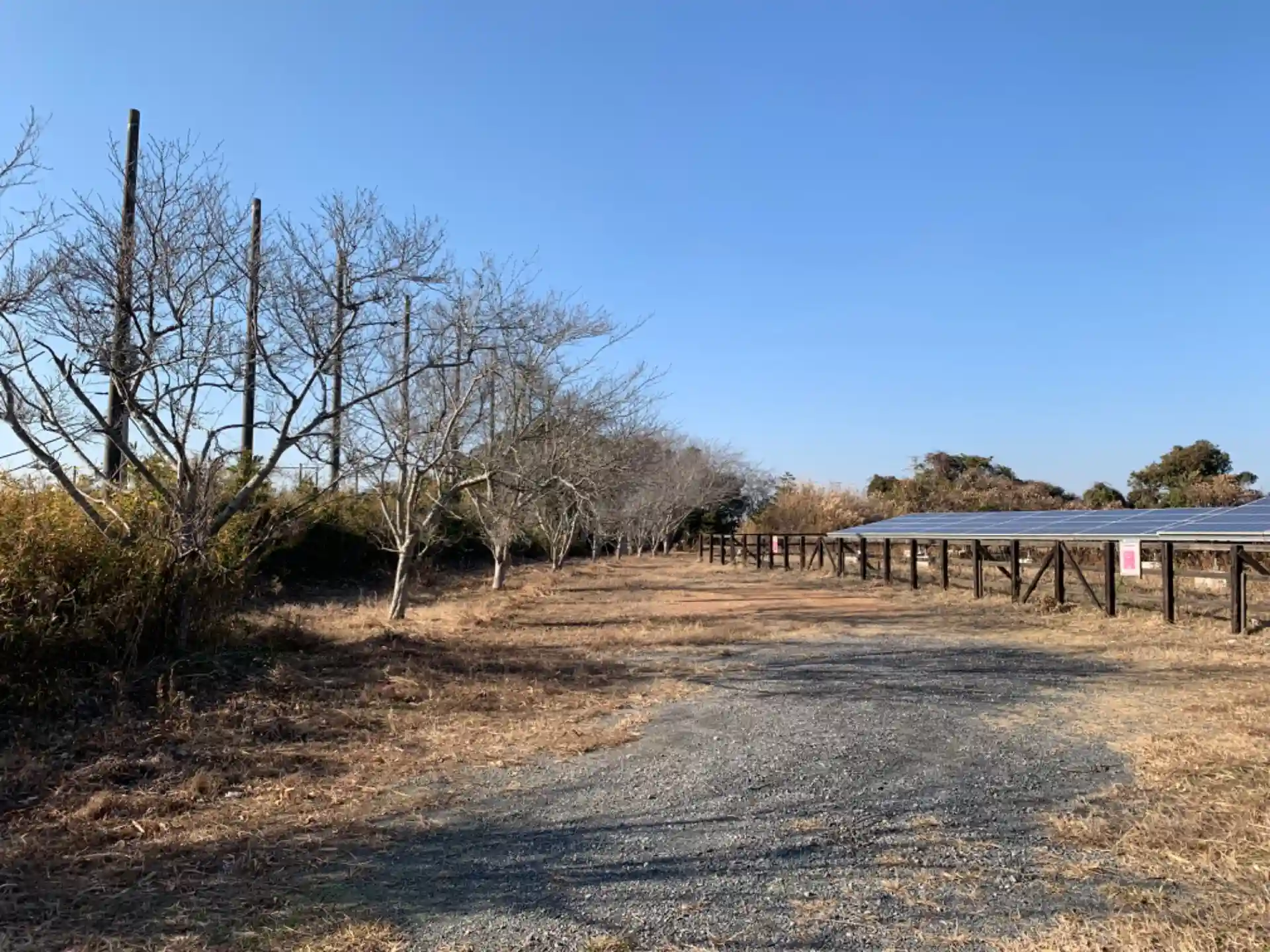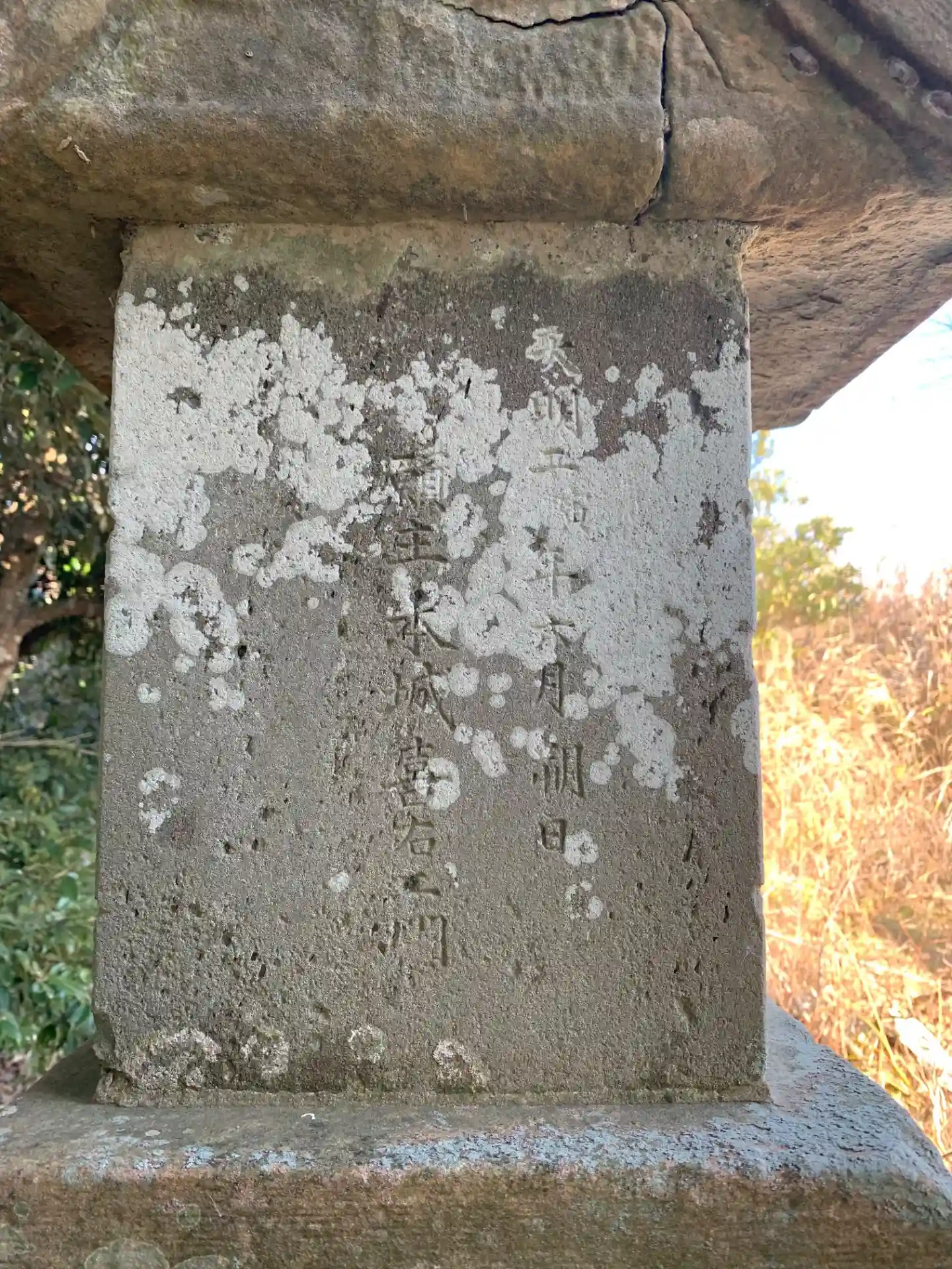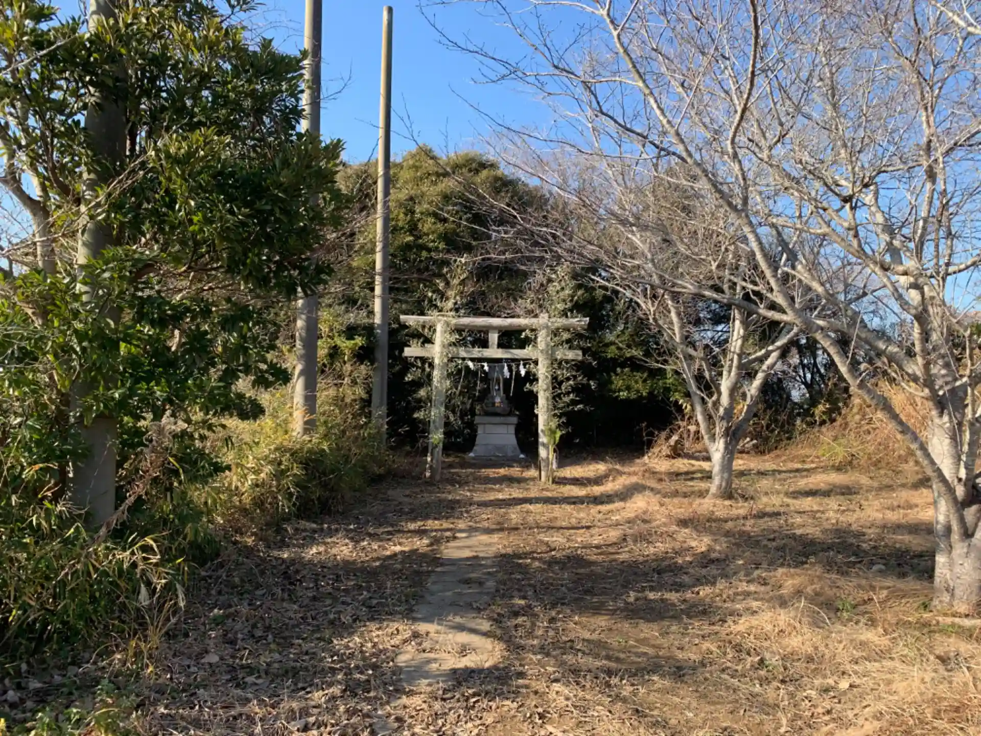 高野町地区から平野部に降りる途中にソーラーパネル地帯があり、奥の方に桜並木と祠があります。祠の側面には「天明二年」「大正四年」とあり、祠の創建と再建年が分かります。台座は銚子信用金庫が平成に寄贈したものでした。