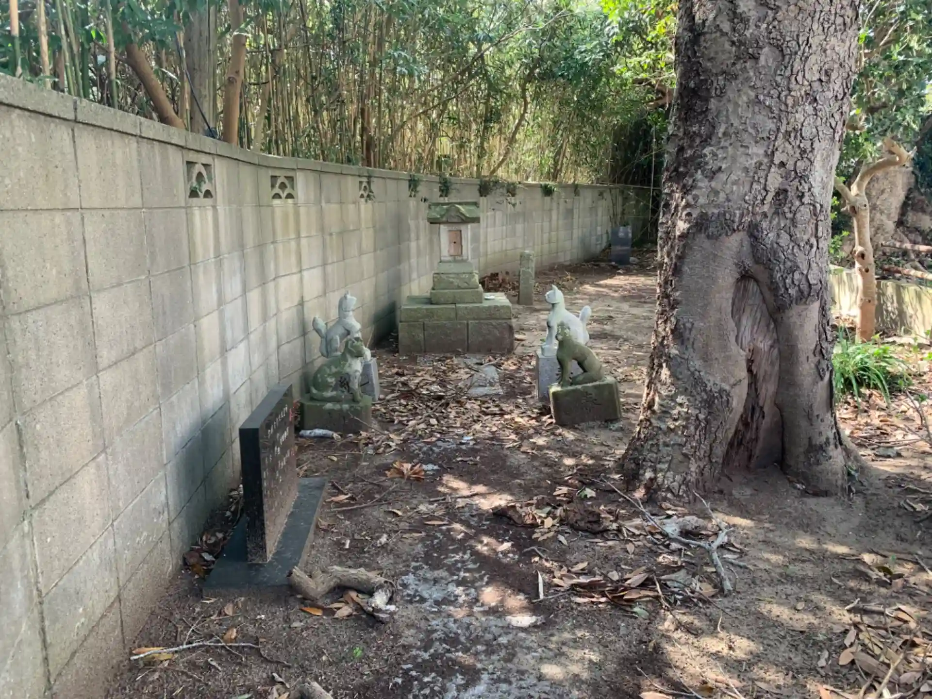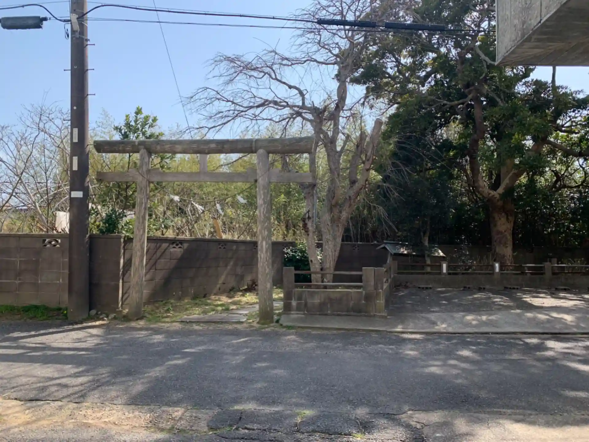 住宅地の片隅の木々の中にある祠。「海上宮発祥之地」と刻まれた石碑がありました。