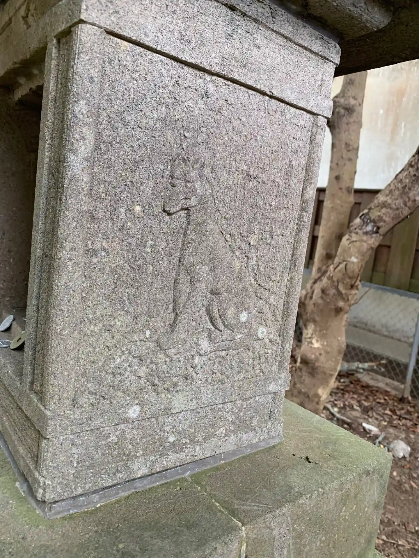 住宅地の片隅にある祠。寛政六年創建だそう。お犬様の像が並び、祠自体にもお犬様が刻まれています。