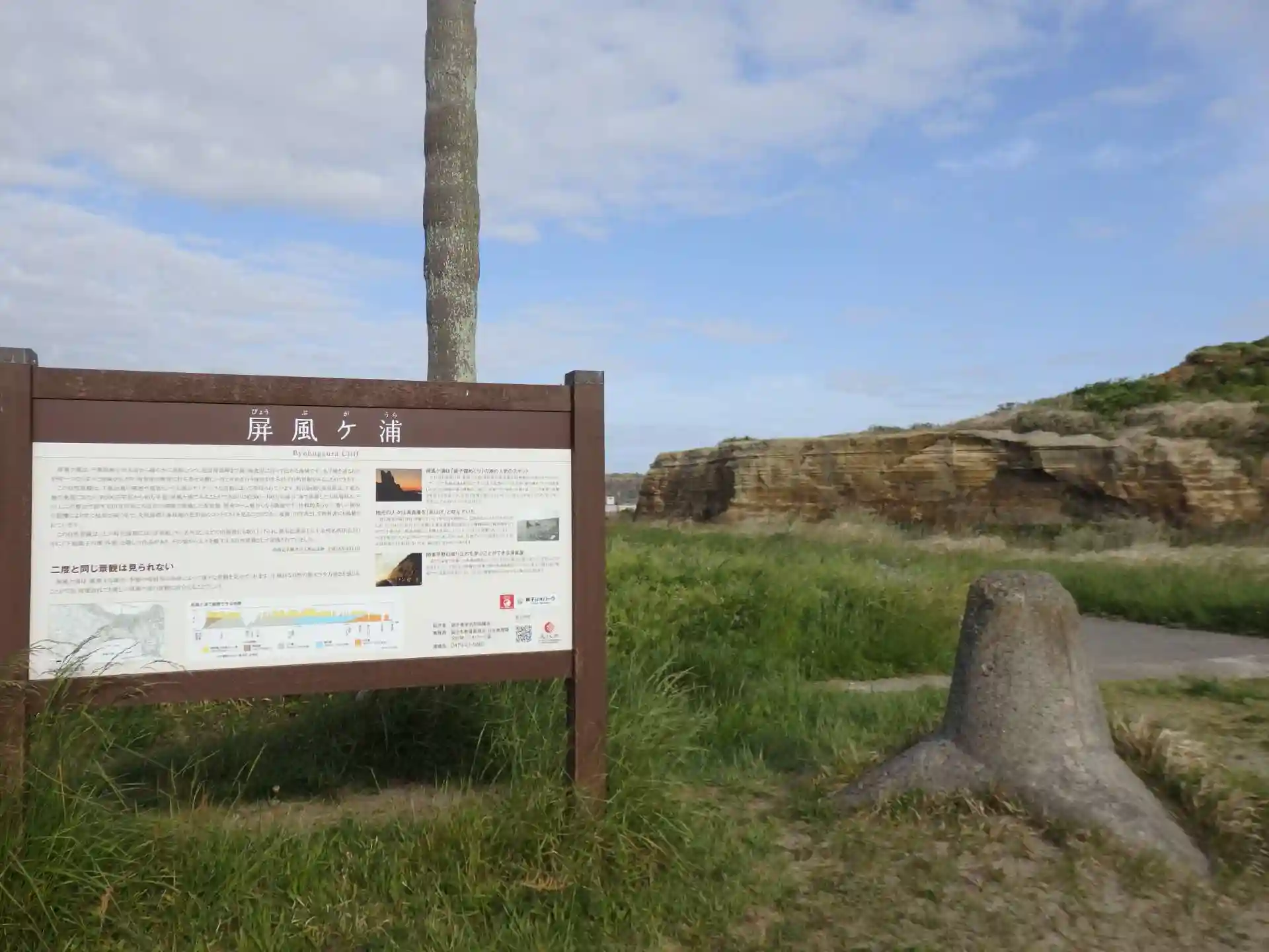 刑部岬展望台では“屏風ケ浦”は見れません。屏風ケ浦の上に有ります。下の飯岡漁港からになります。