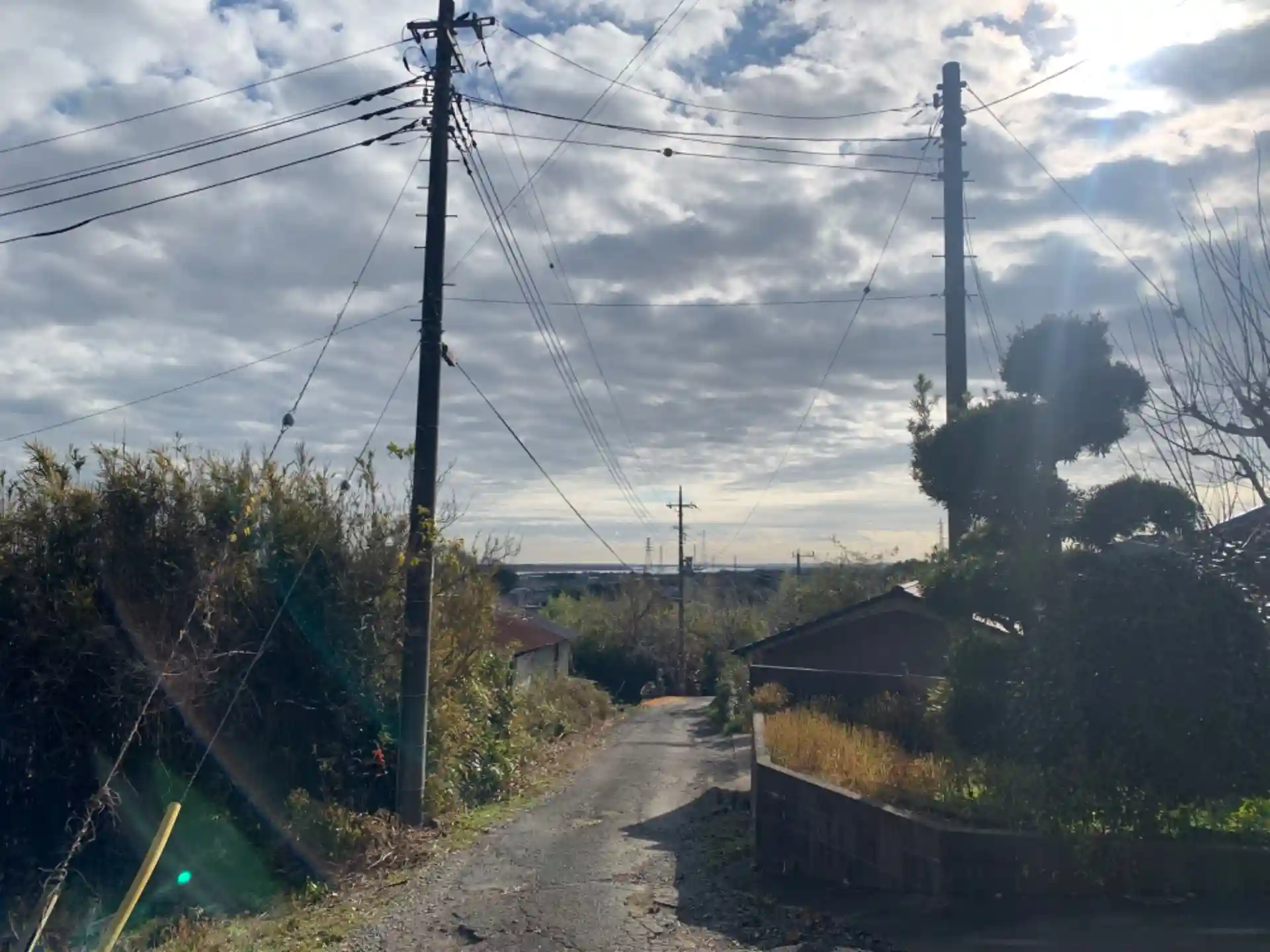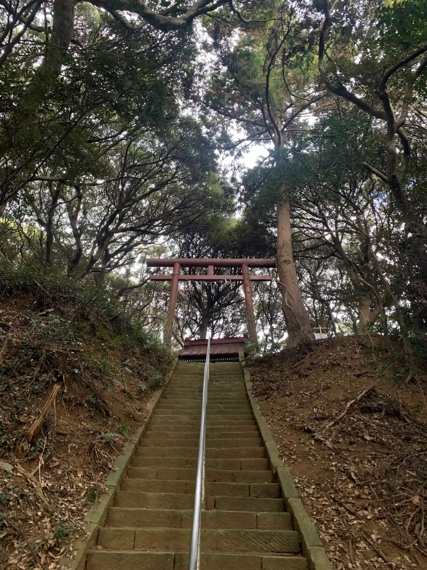 線路を跨ぐ道は封鎖されており、南側に参道があります。蛇行する上り坂の上に雑木林とお社があり、山の神様といった風情でした。落ち葉などは払われて歩きやすくなっています。
