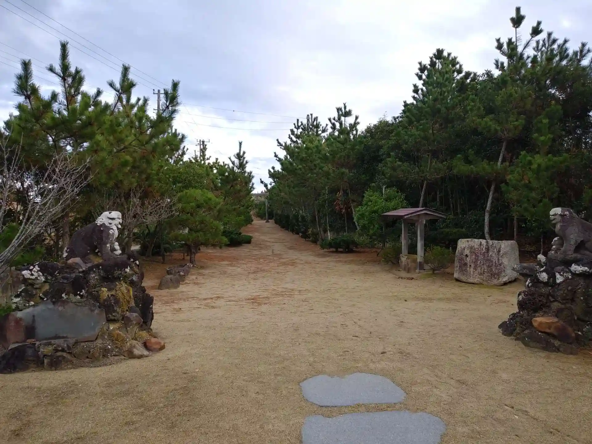振り返って。参道は海砂です。