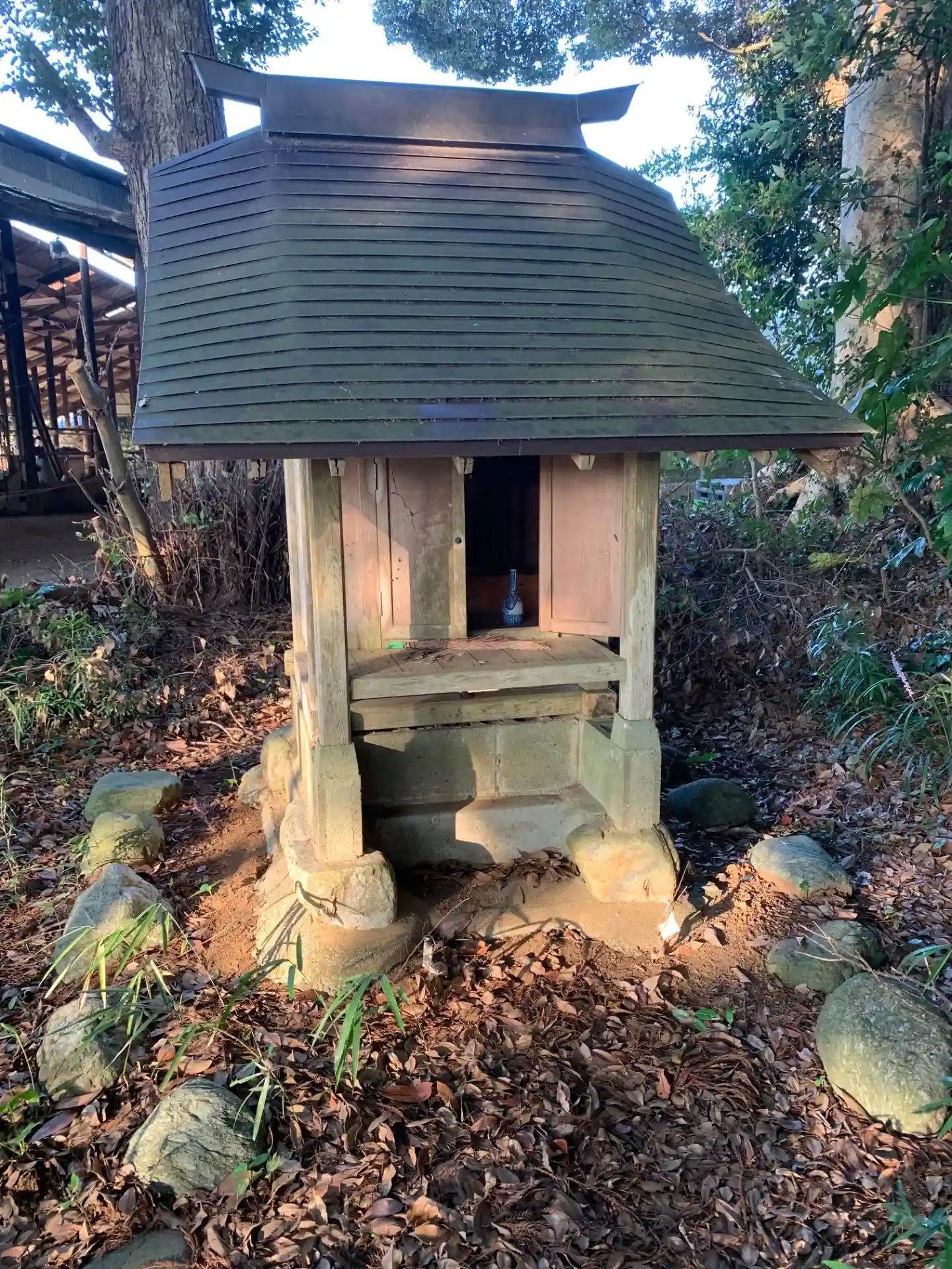 杉林の中にある祠。御神体は菅原公でした。