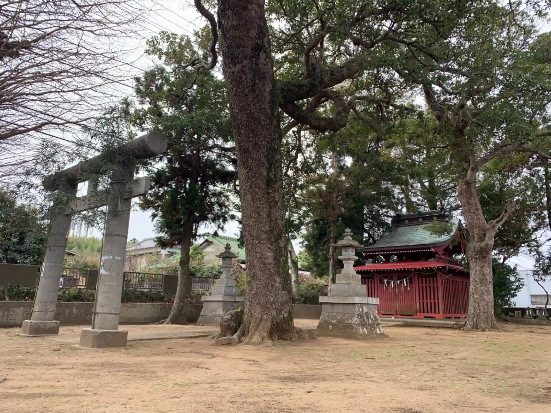 秀蔵院の向かいにある神社。欅やスダジイ、イヌマキ、銀杏など色んな樹種が見られました。