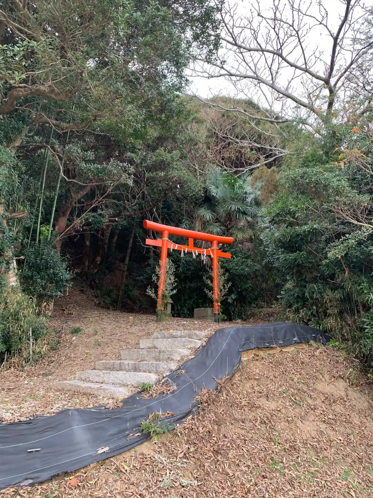 下総橘駅のホームから見える鳥居から登ることができます。祠のさらに奥へ行くと病院の裏に出ますが、石出堰周辺のちょっとした遊歩道へもつながっています。