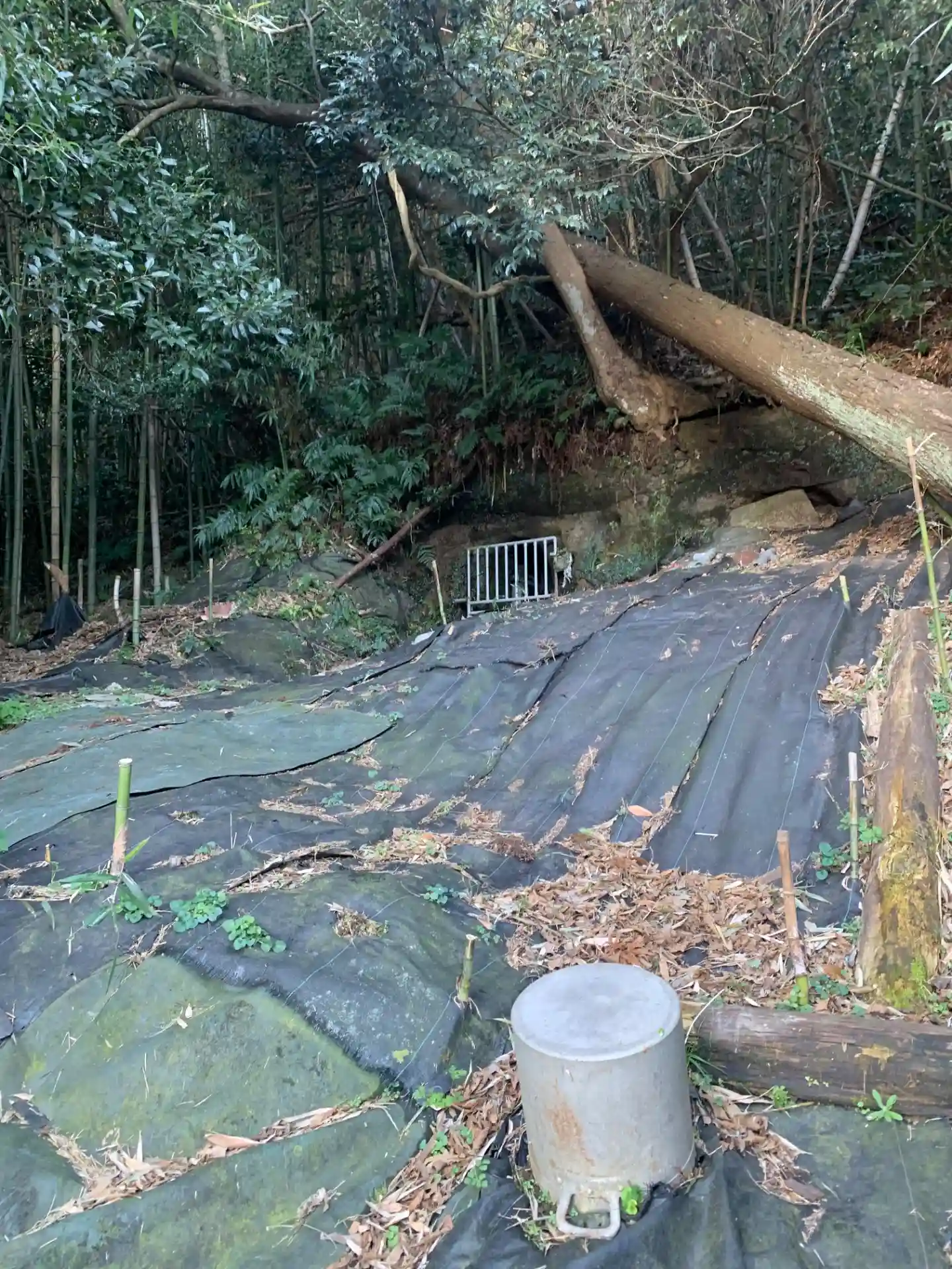 森戸町地区の鎮守。崩落防止の壁の切れ目の奥に湧水があり、ぬかるんだ坂道を登ると台地の上の諏訪大社に出ます。