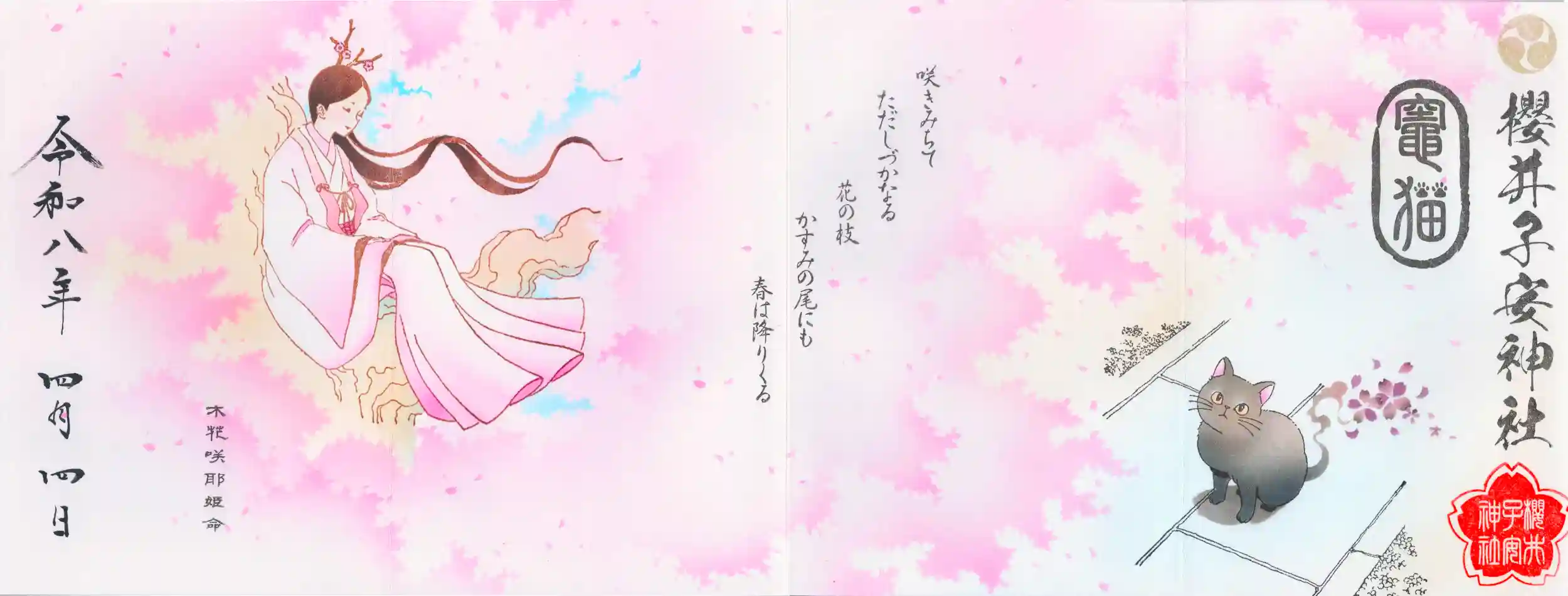 御朱印は竈猫とコノハナサクヤヒメさまのご朱印でとても美しいです。
