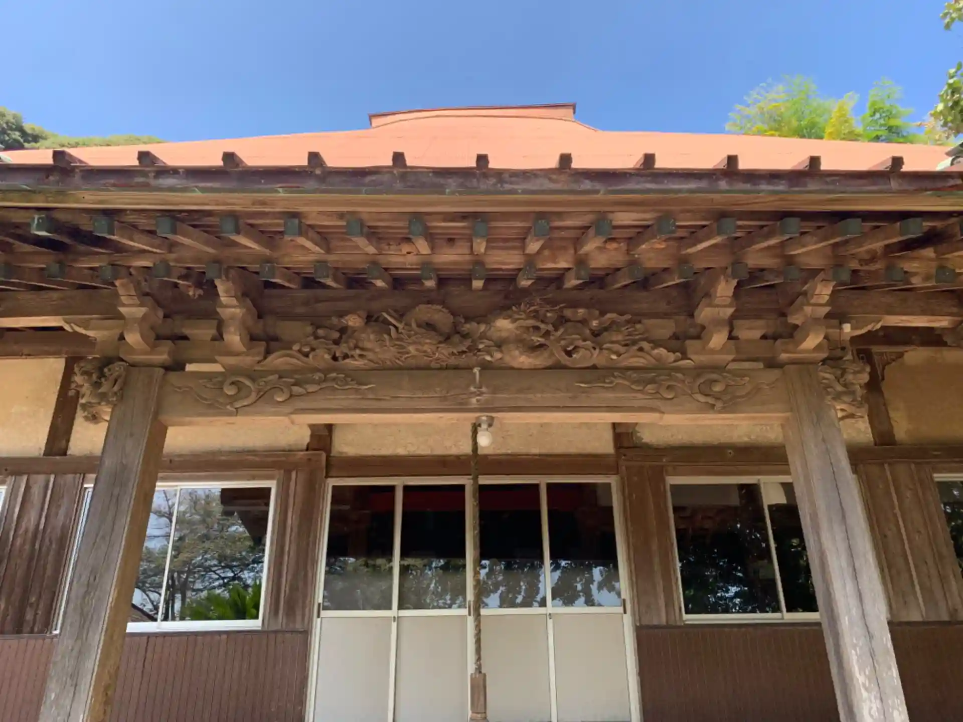 黒部川沿いの丘陵にあるお寺。1256年創建で、現在の本堂は1685年から改修しつつ今に至るそうで、建物自体に歴史があります。堂内には古いお寺に特徴的な極彩色の欄間彫刻が飾られていました。