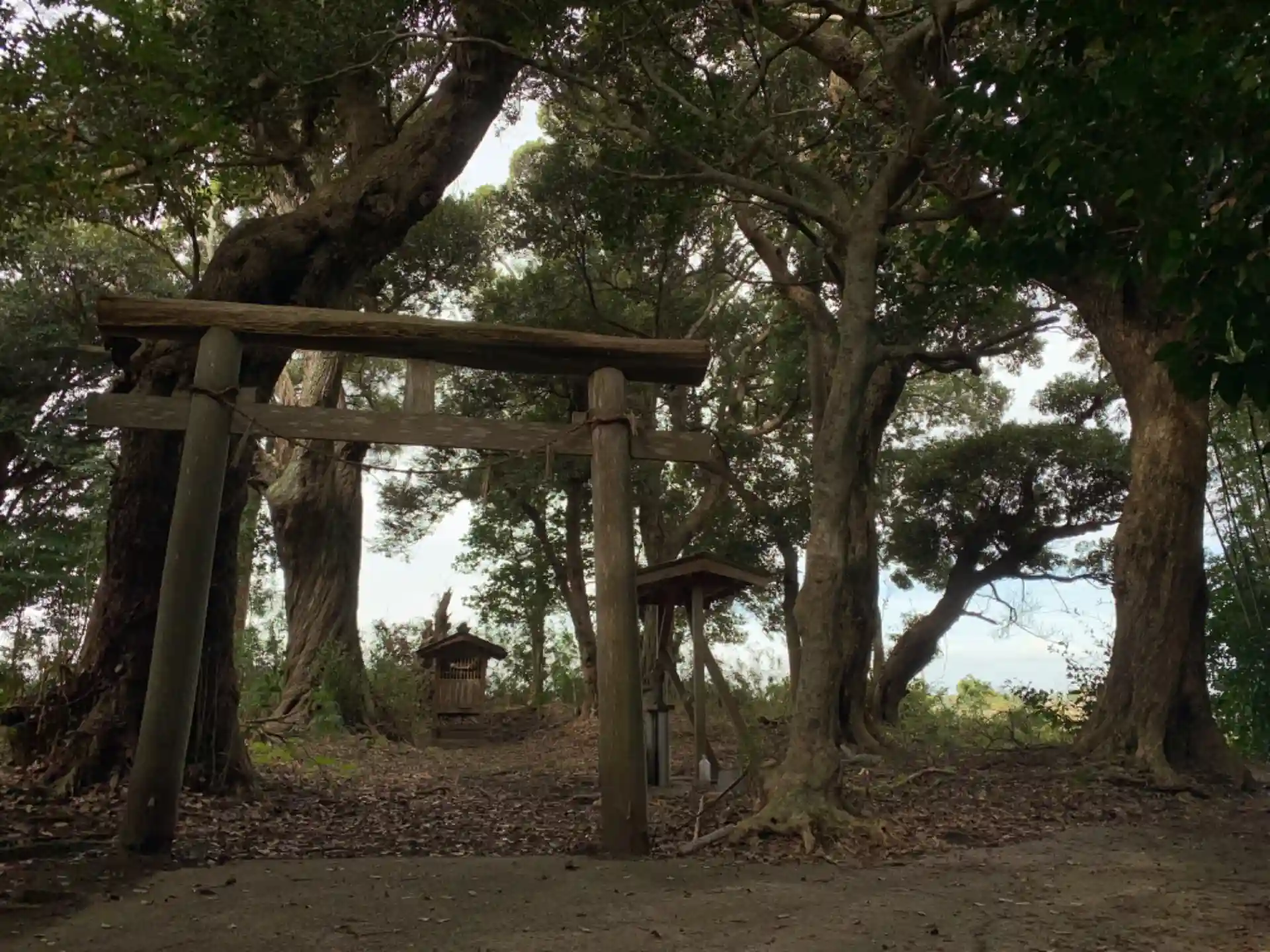 木祠の周りに古木が何本も生えていました。