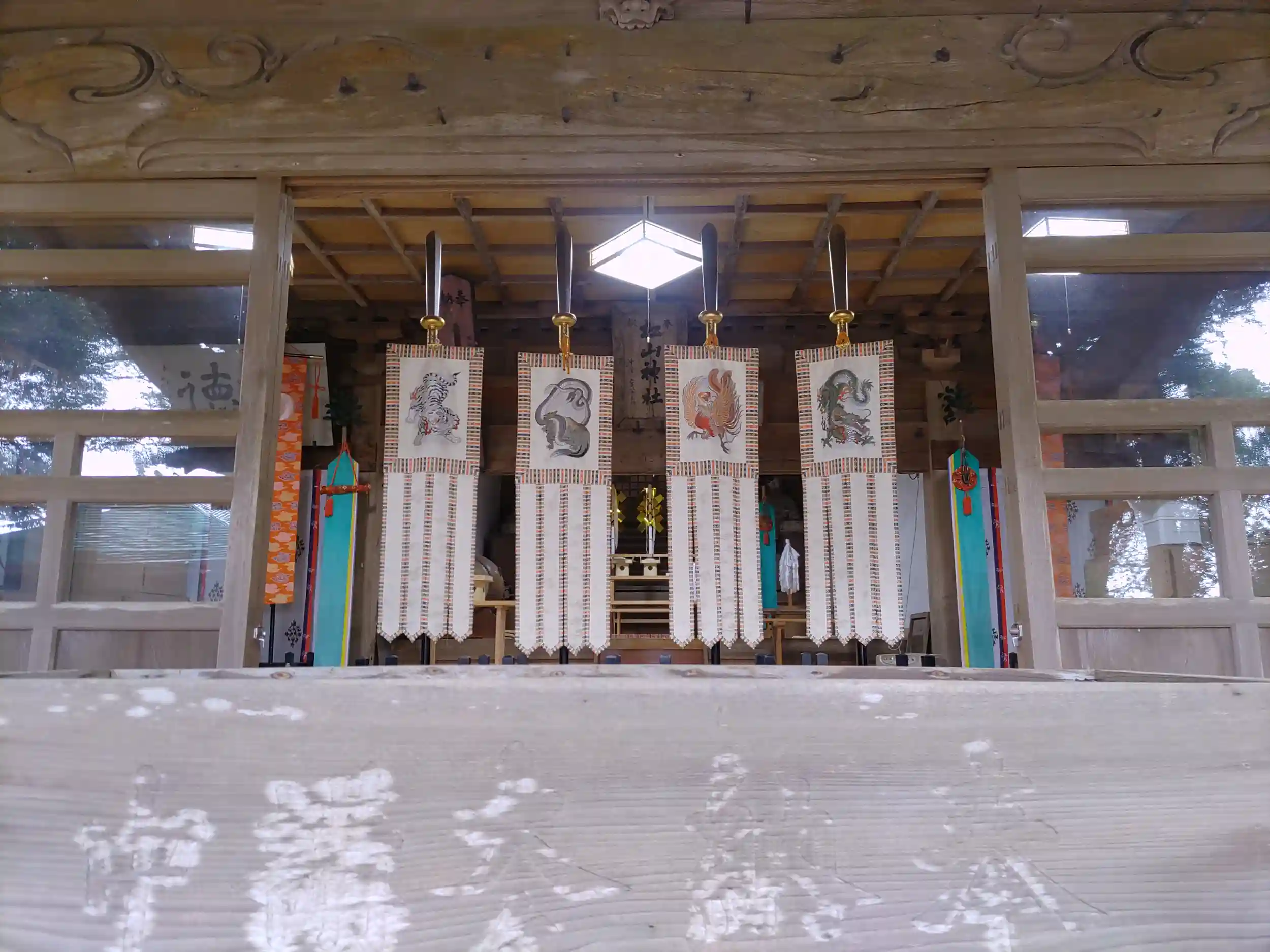 拝殿に飾られた四神獣の幟もカッコよかったです。