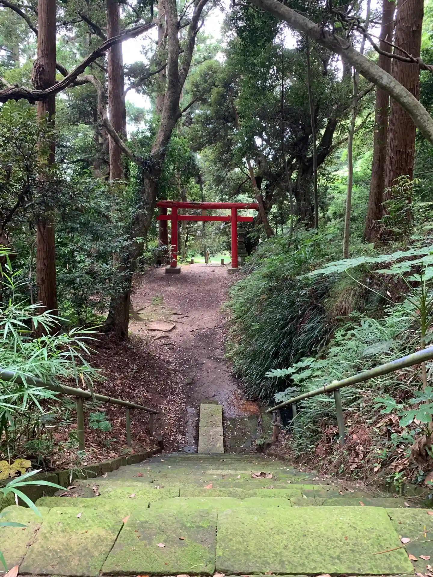 脇道へ入るところに標柱があり、坂を上るとすぐ鳥居があります。趣のある石段を登ると広々とした境内に出ます。赤い本殿には彫刻が飾られていました。