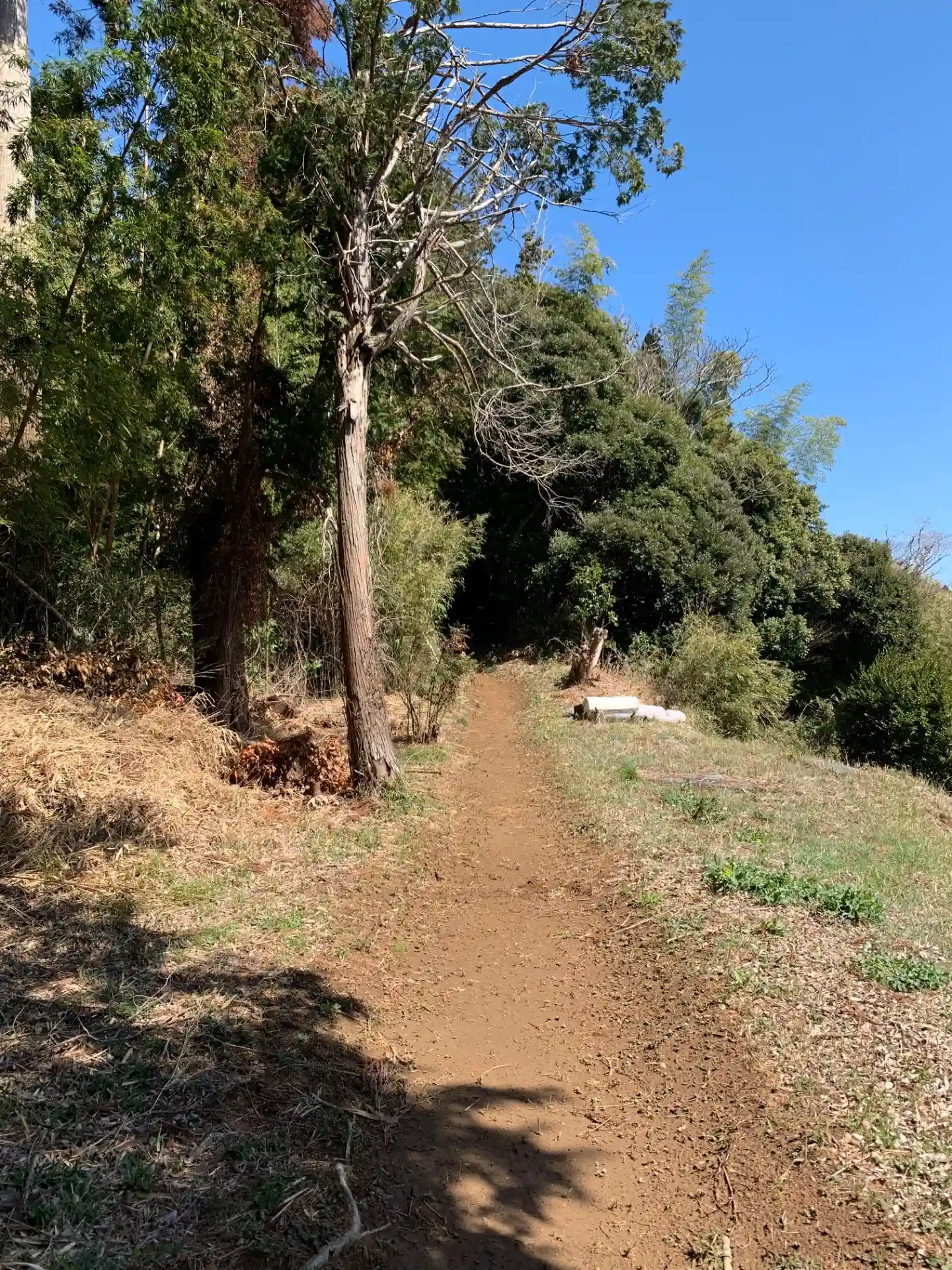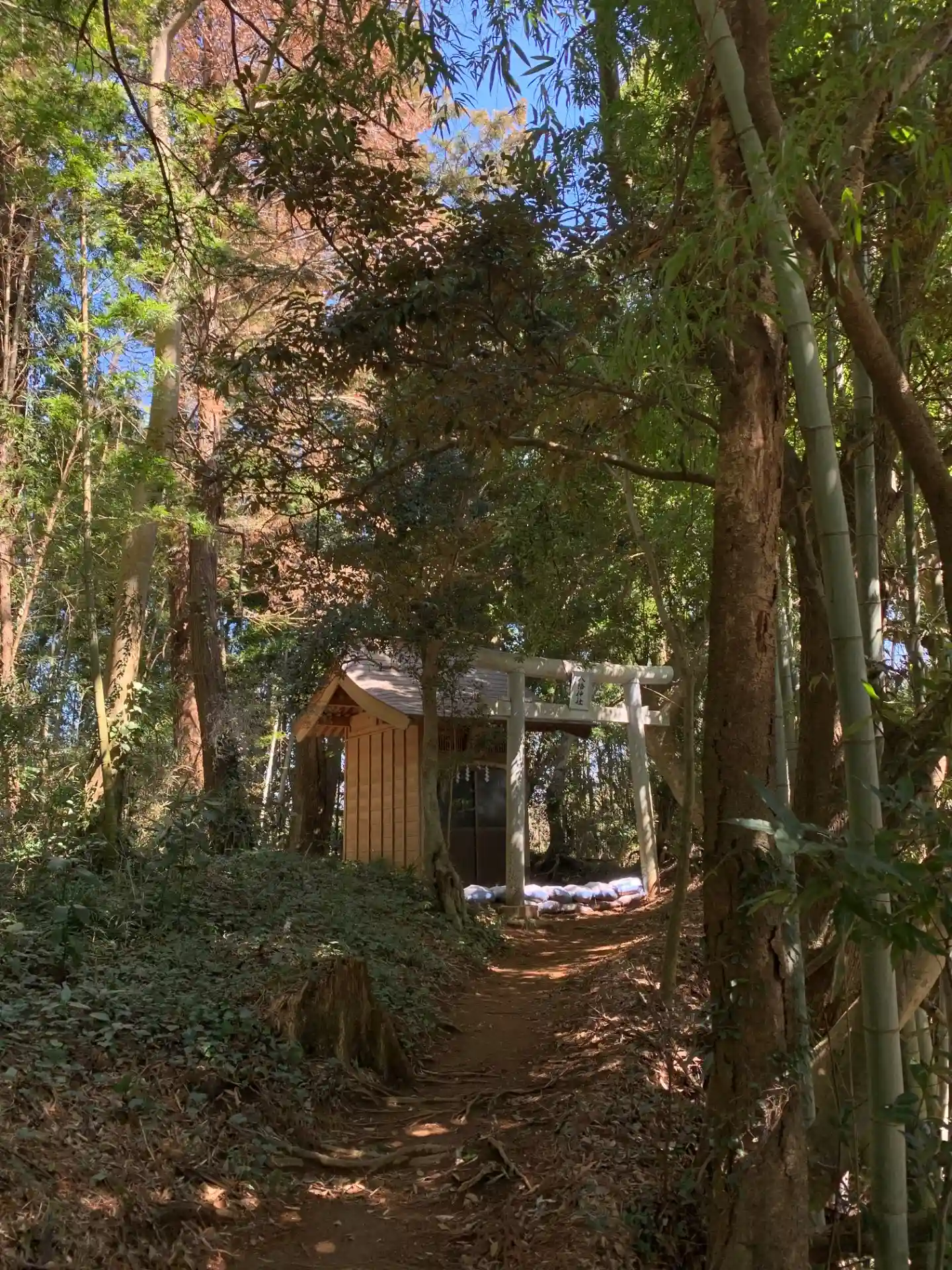 芝生で覆われた敷地の一角に登れる場所があります。立地的に氏神様でしょうか。