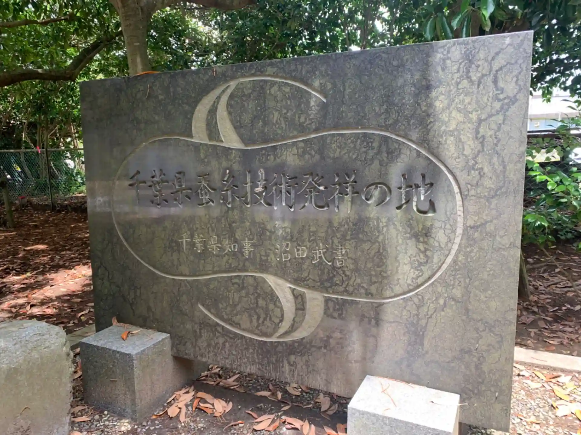 隣には県内初の養蚕試験場が建てられたことを記念する石碑があります。この試験場には蚕神社が併設され、試験場とともに東金に移転したことが記されていました。
