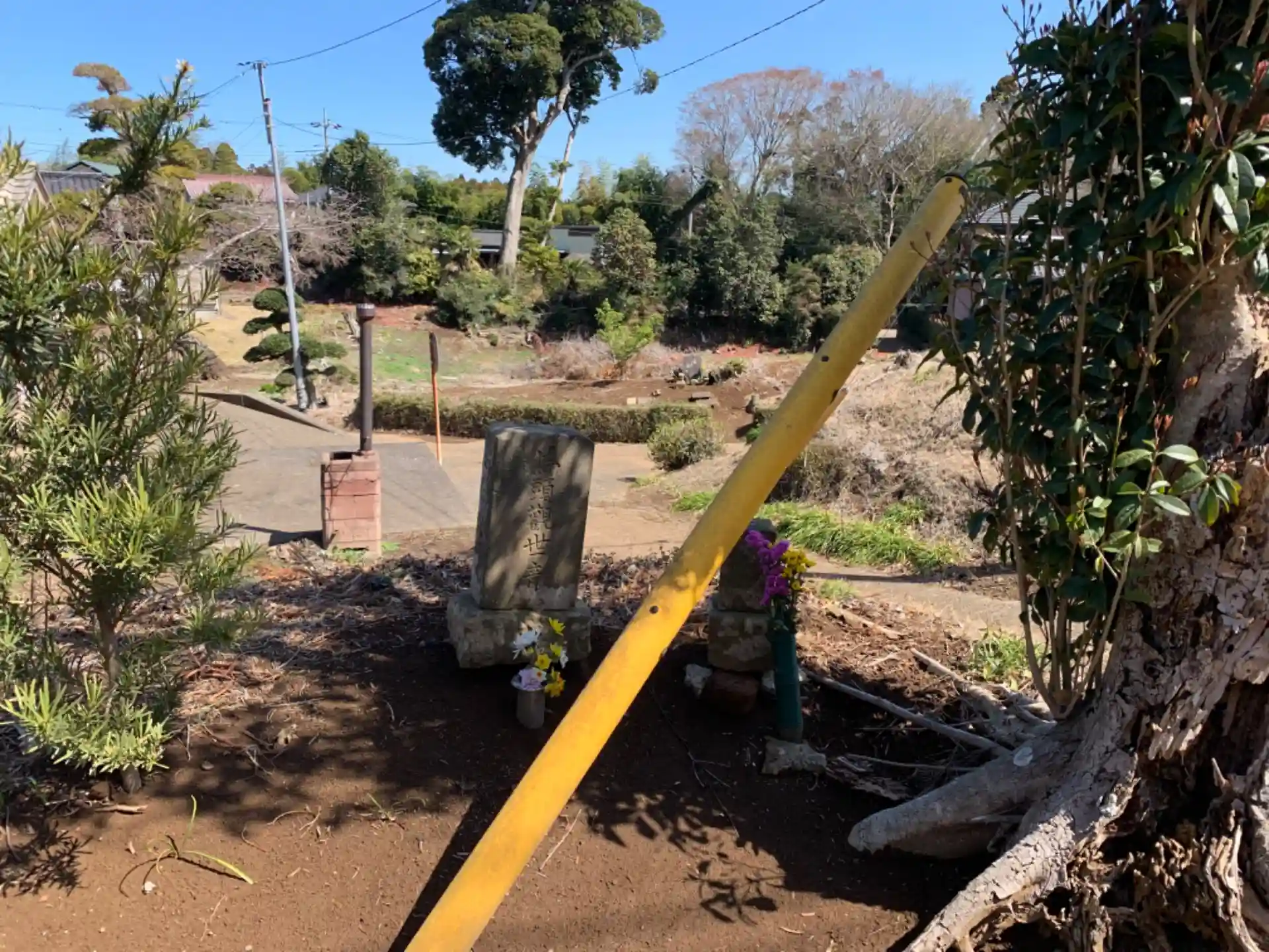 台地の突端にあるお寺。境内のお社は七面堂でしょうか。近くには馬頭観音があります。