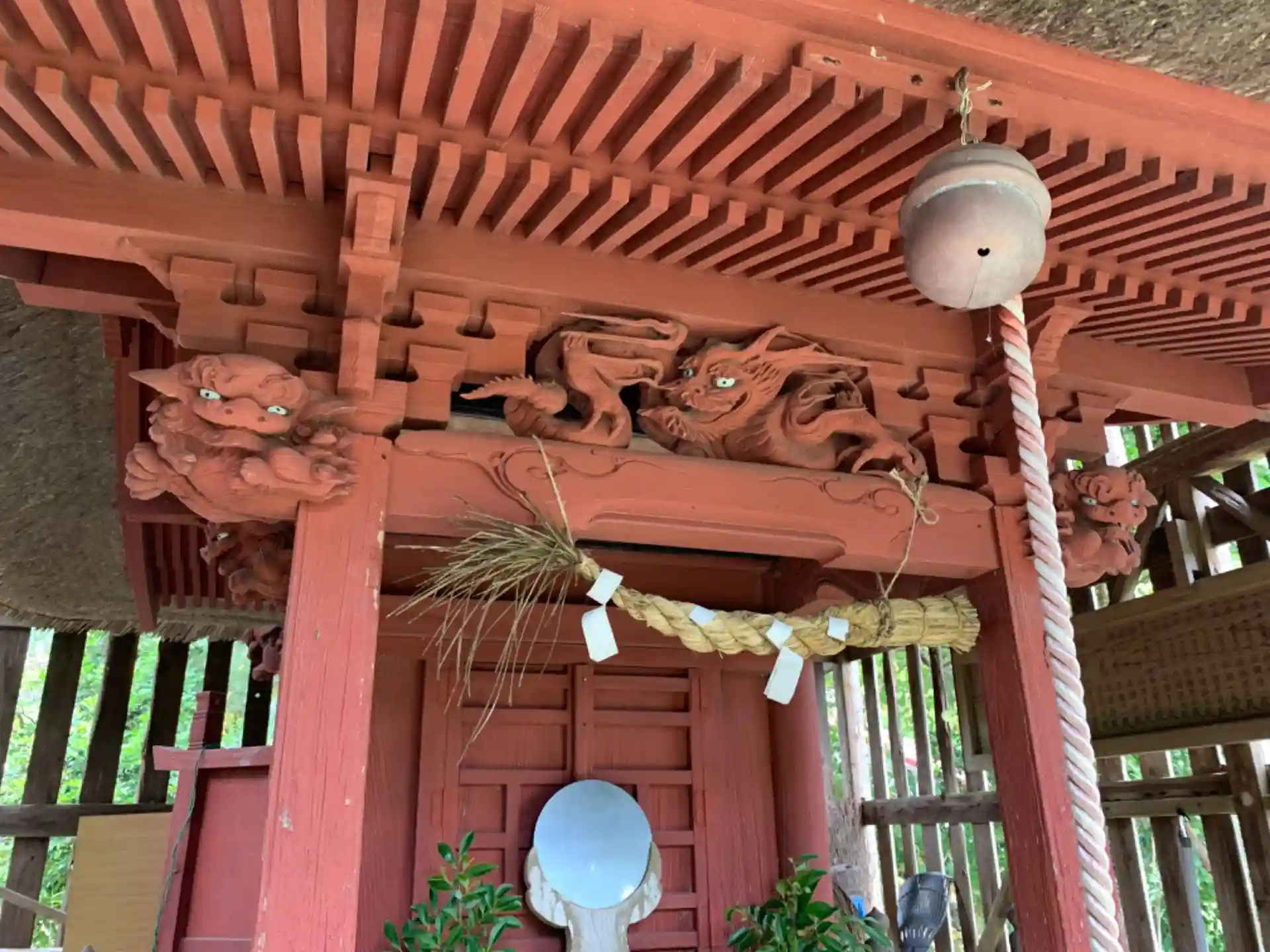 日吉神社が近接してふたつあります。こちらでは龍の彫刻が見られました。