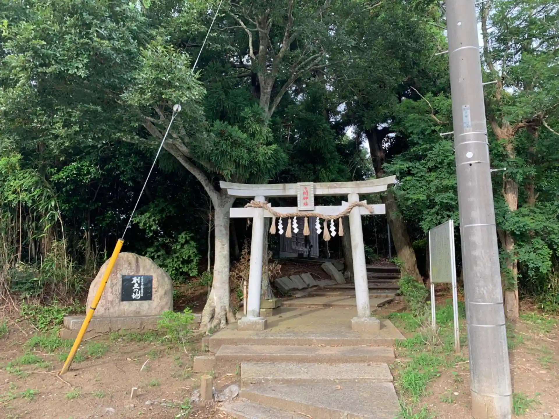 城址の上に建つ神社。かつては椿海の水辺の砂丘に建つ城があったと記されています。