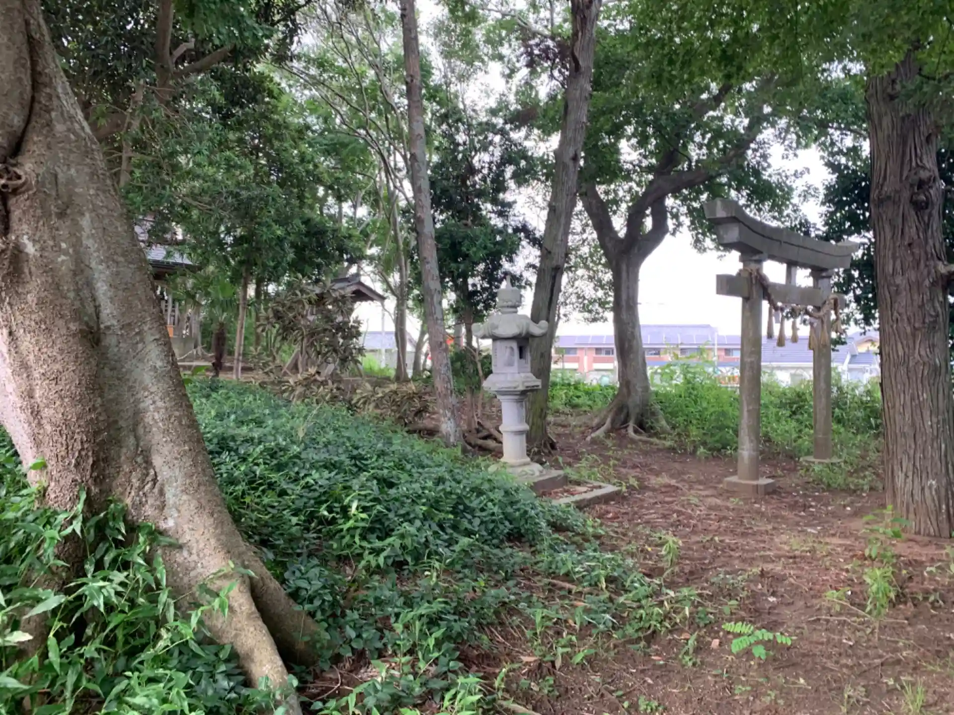 交差点に囲まれた小さな雑木林の中にお社があります。