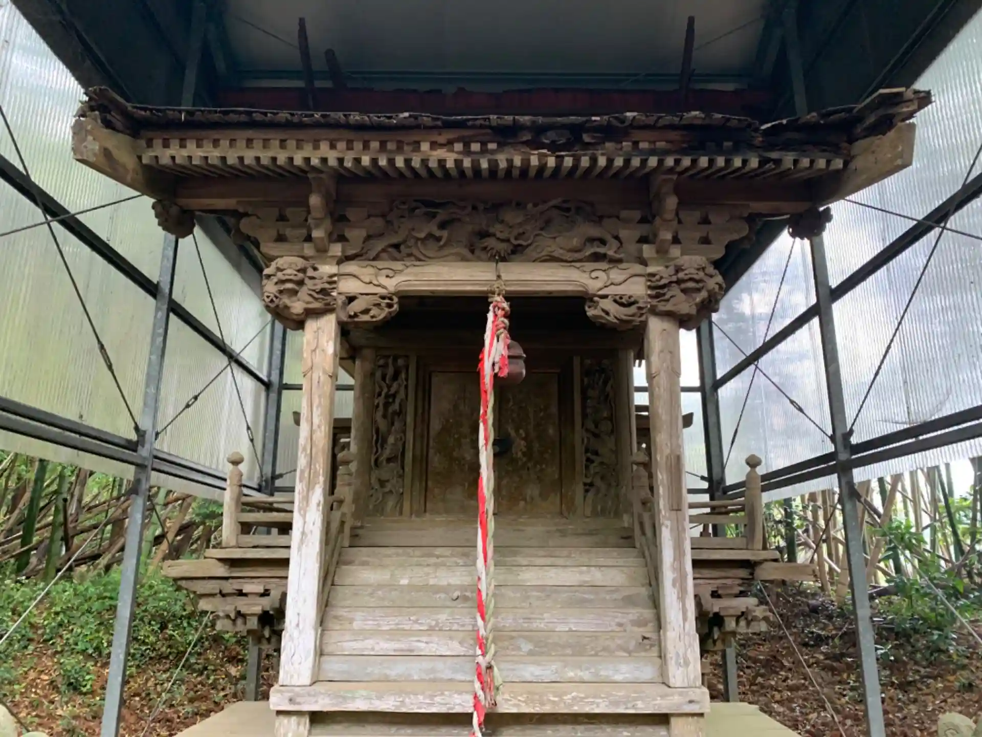 旧社格は村社。拝殿はかなり古びていますが本格的な本殿彫刻を見ることができます。