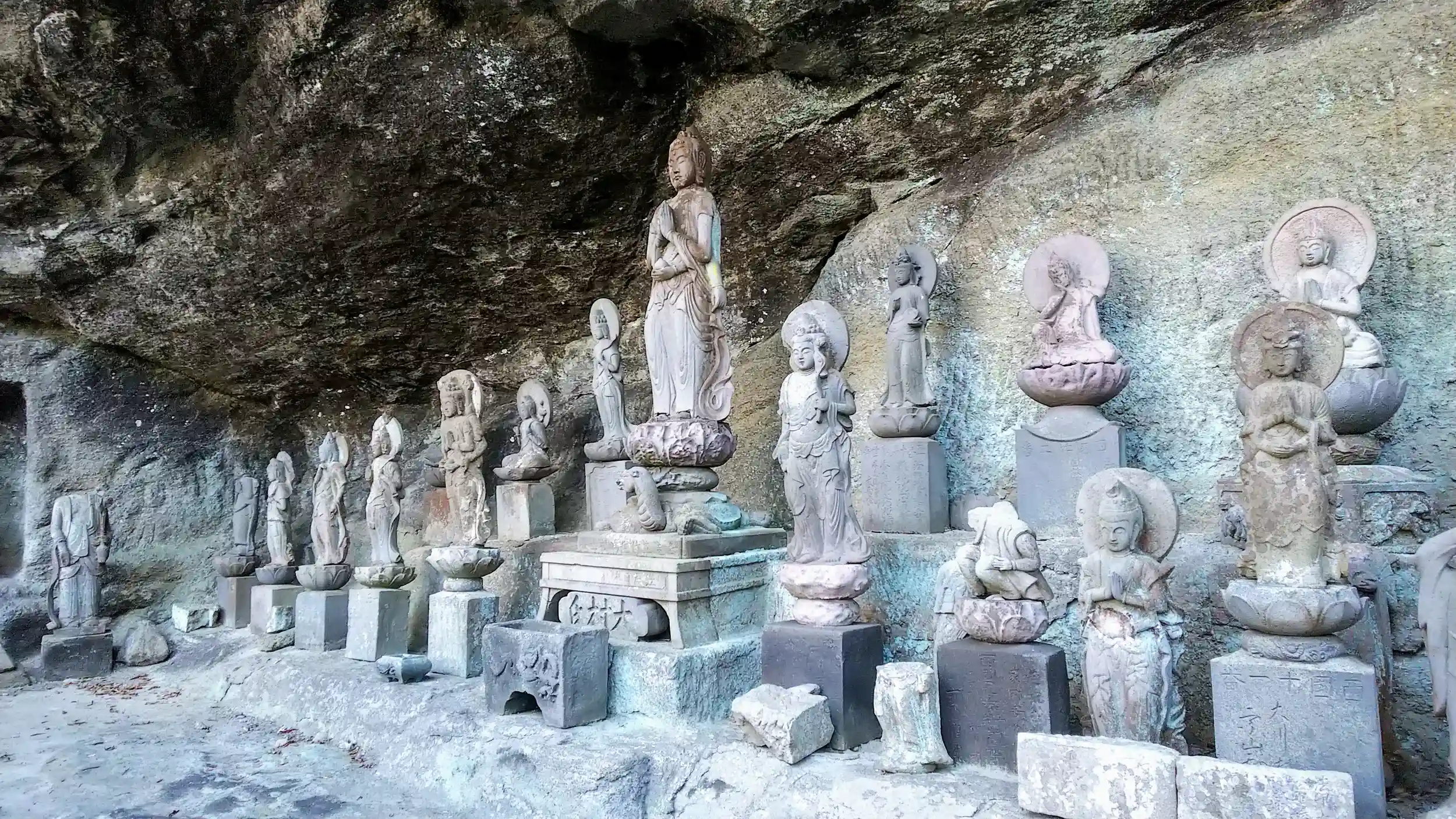 神亀2年(725年)の創建と云われています。31.05mの大仏(薬師瑠璃光如来)は天明三年(1783年)作成、岩山を3年がかりで彫刻して作られました。百尺観音は昭和35年(1960年)から6年がかりで彫刻されています。どちらも大迫力でした。広い敷地はアップダウンが激しく、ちょっとした登山を味わえます。駐車場あります。