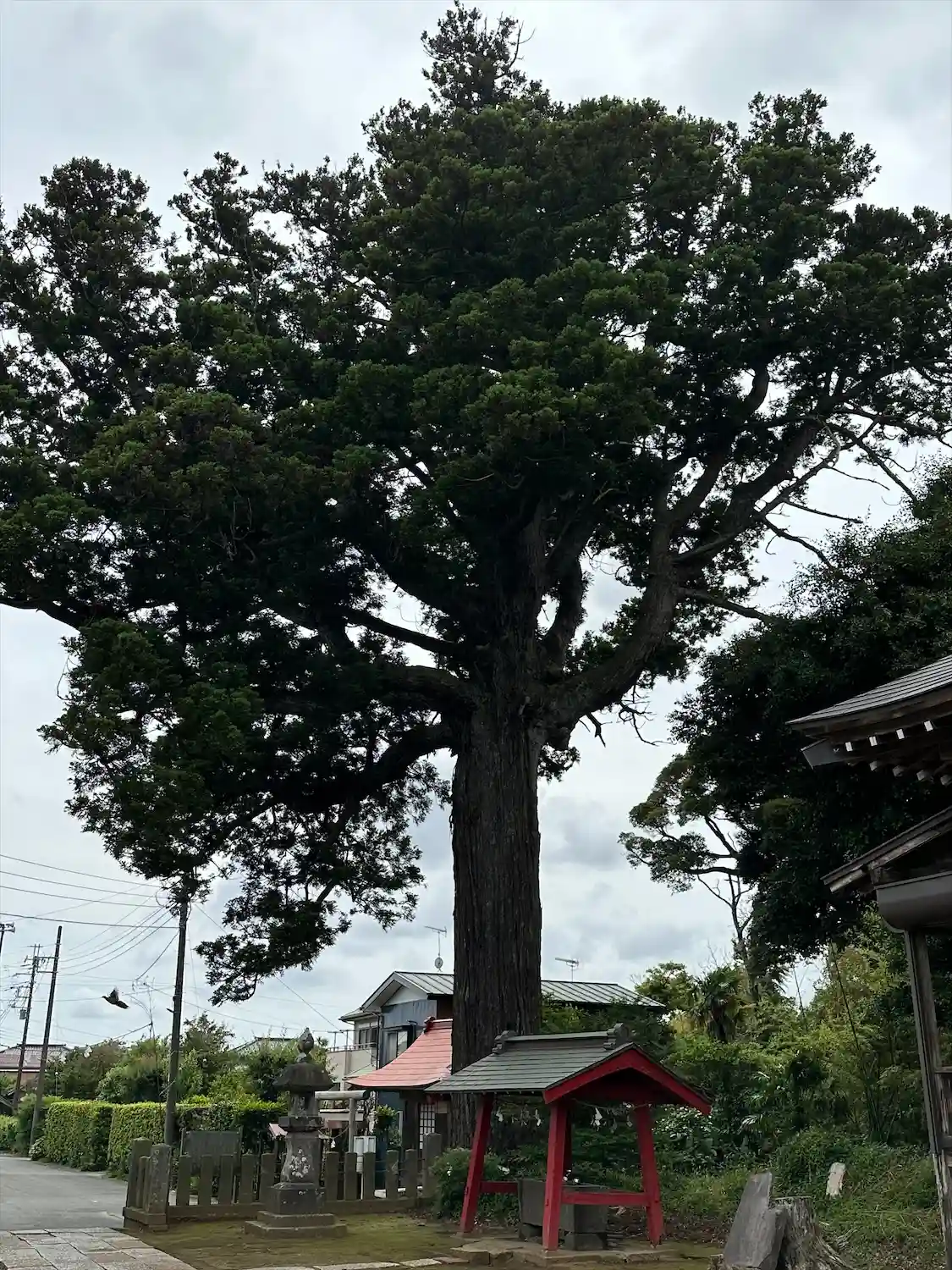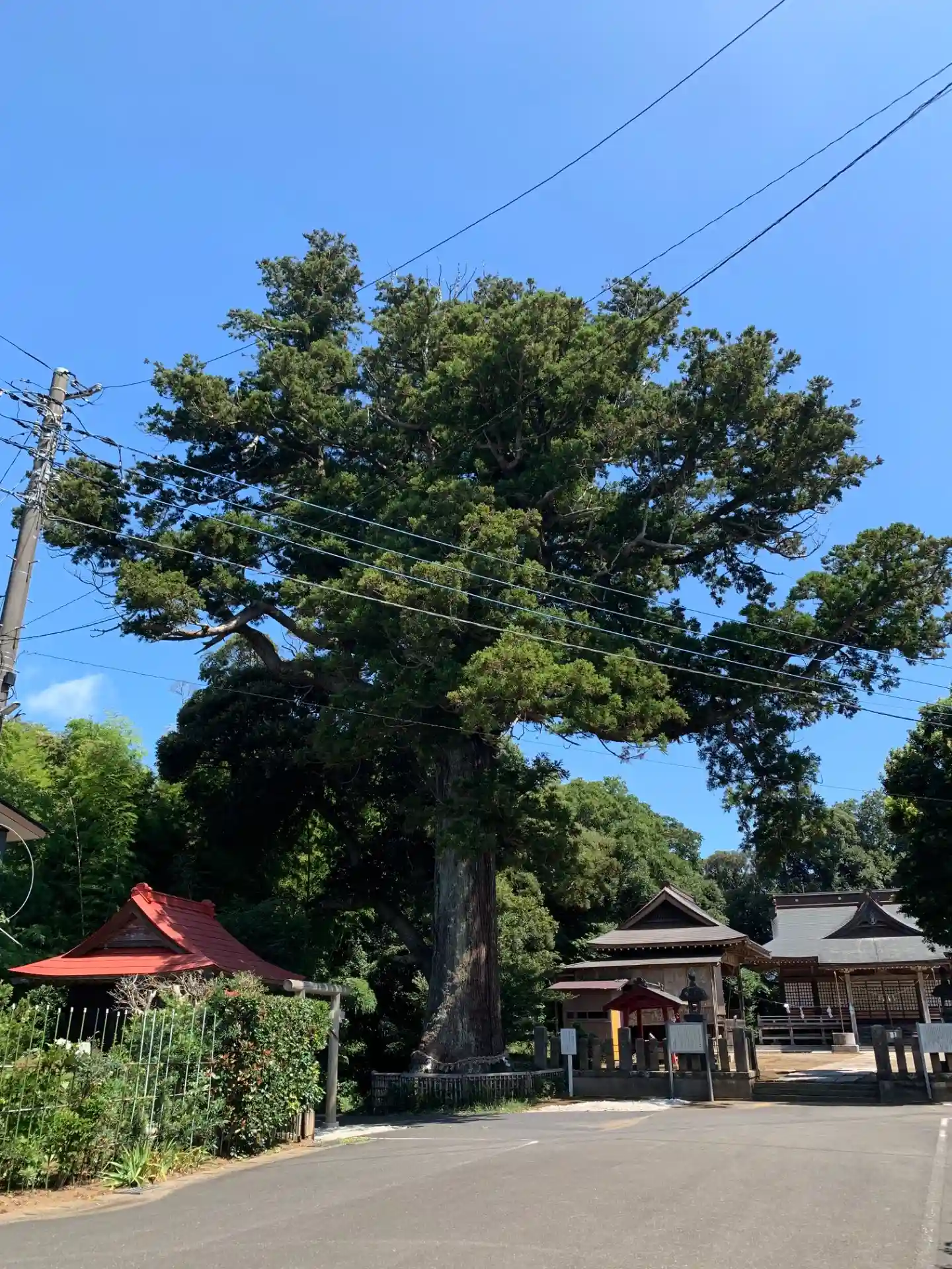 左に野キジが映っております。とにかく立派な御神木。