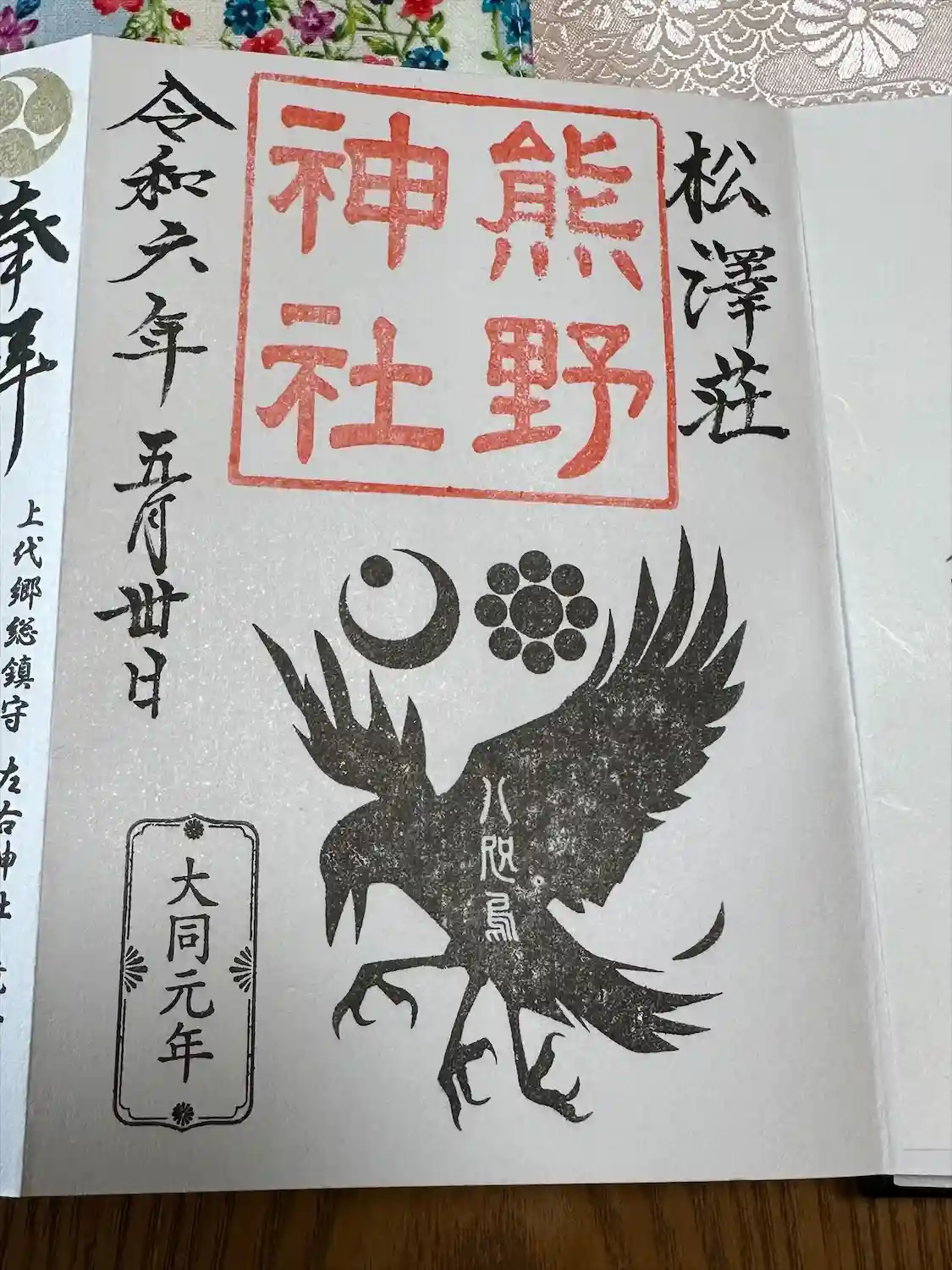 熊野神社のシンボル。八咫烏の御朱印。とても素敵です。