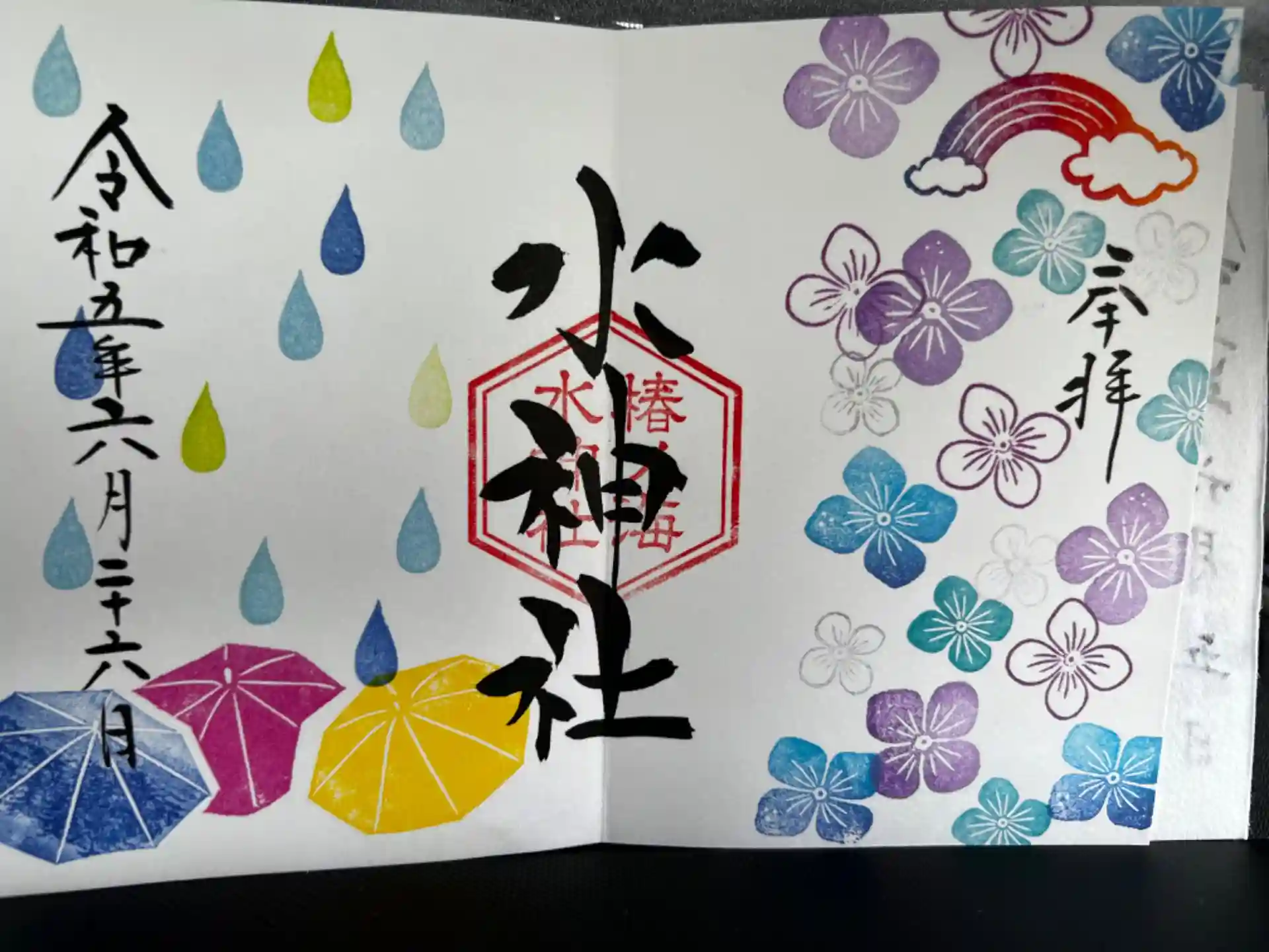 七月七日、七夕の日限定の見開き御朱印を拝受しました。きっと朝から多くの方がいらしてお疲れでしょうのに、丁寧な対応をしていただきありがとうございます。とても素敵な御朱印、明日からまた仕事頑張るぞー💪❤️