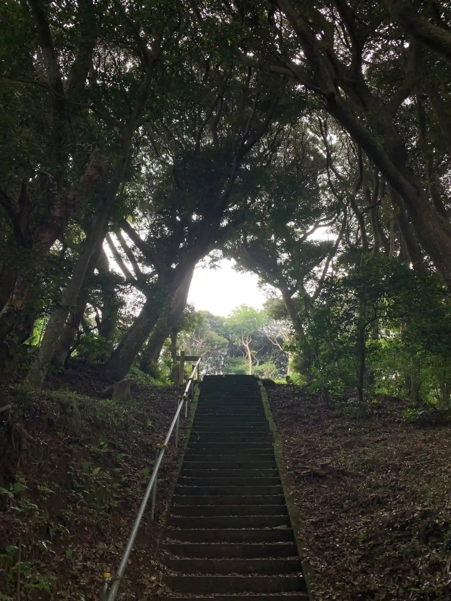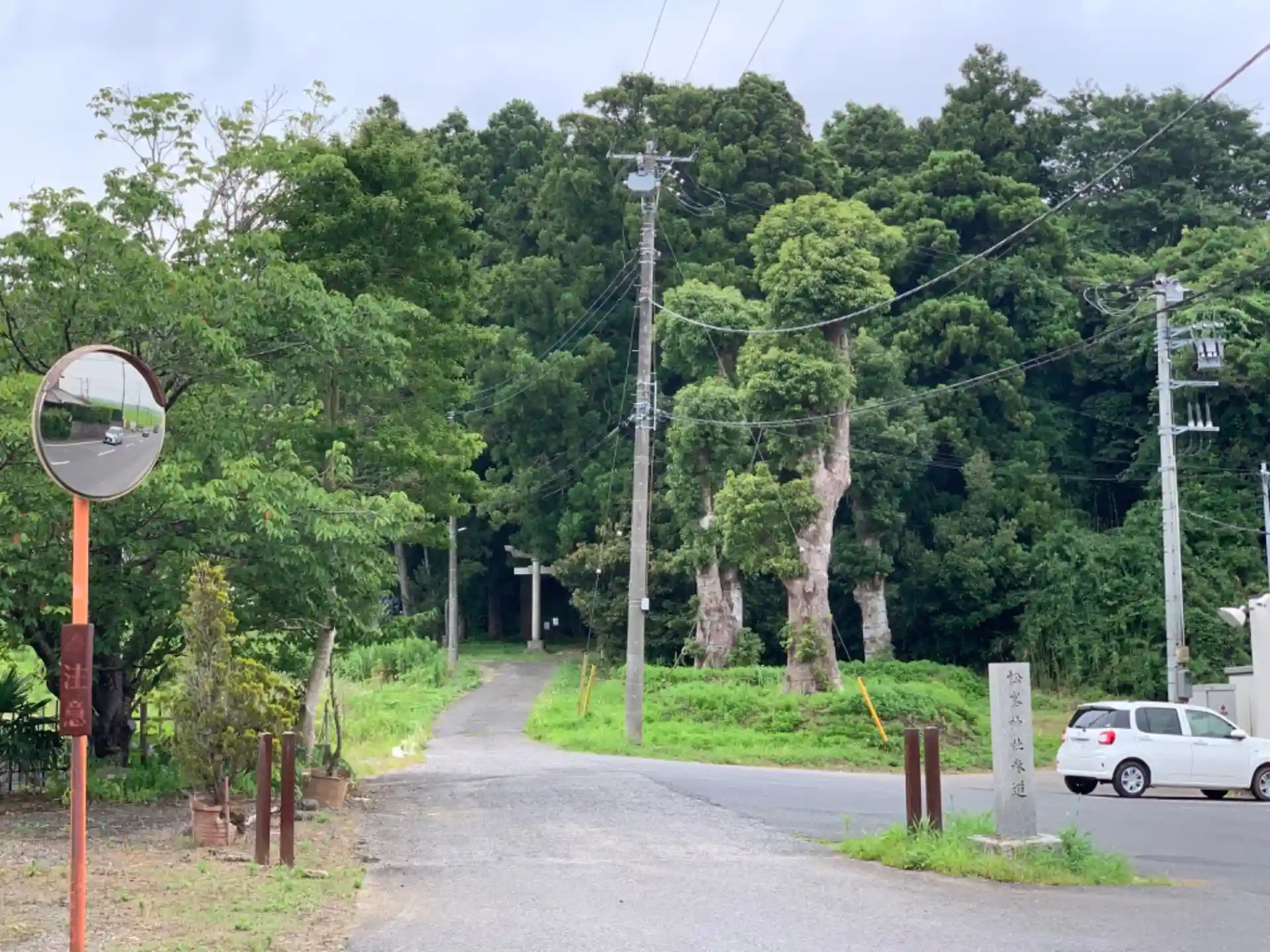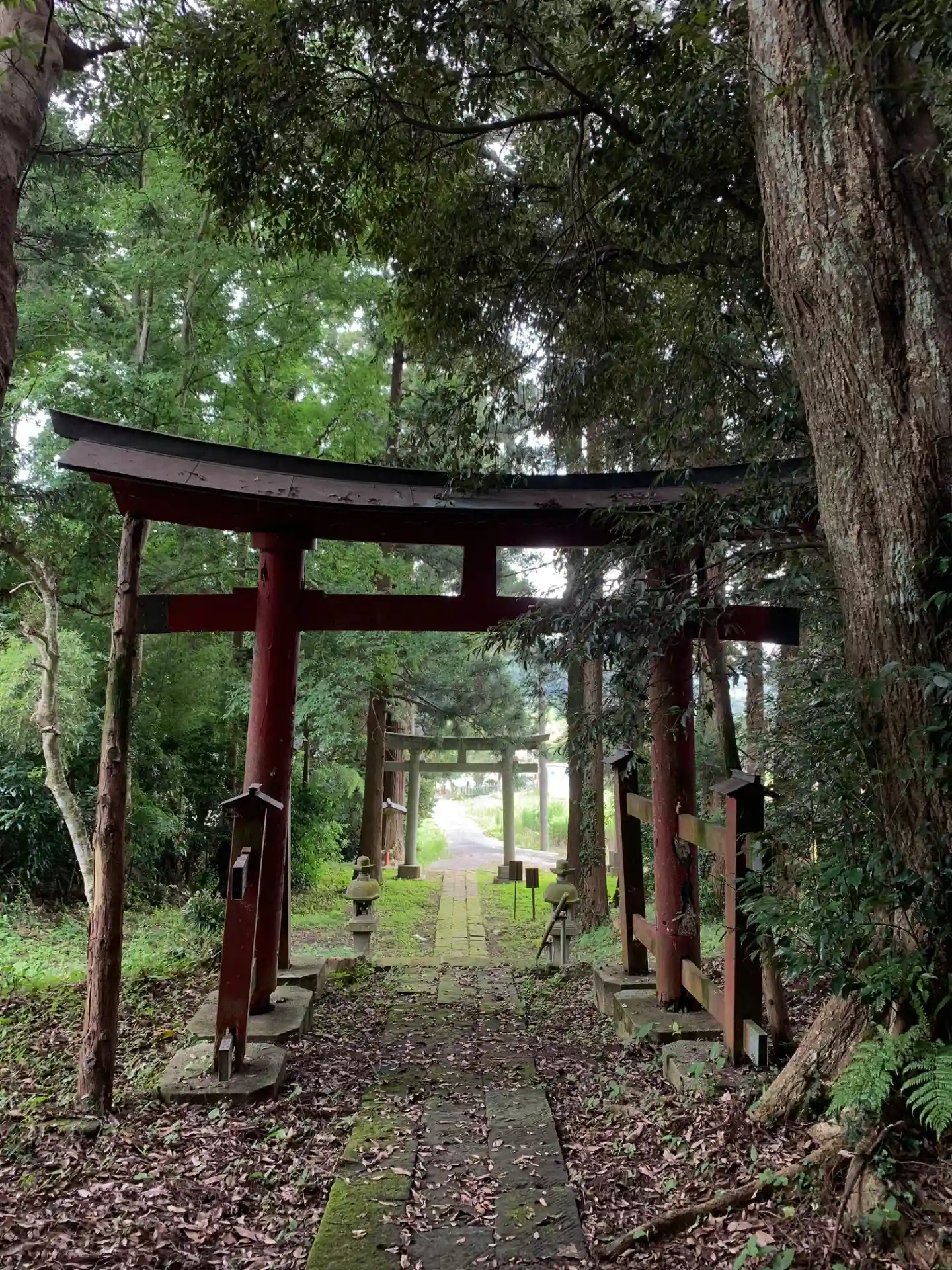 コンビニ裏にある神社。まっすぐで古びた石段がとてもよい雰囲気です。また境内の木々の隙間から干潟の田園を一望できます。かつて椿海だった頃は行き交う船を見ることができたことでしょう。