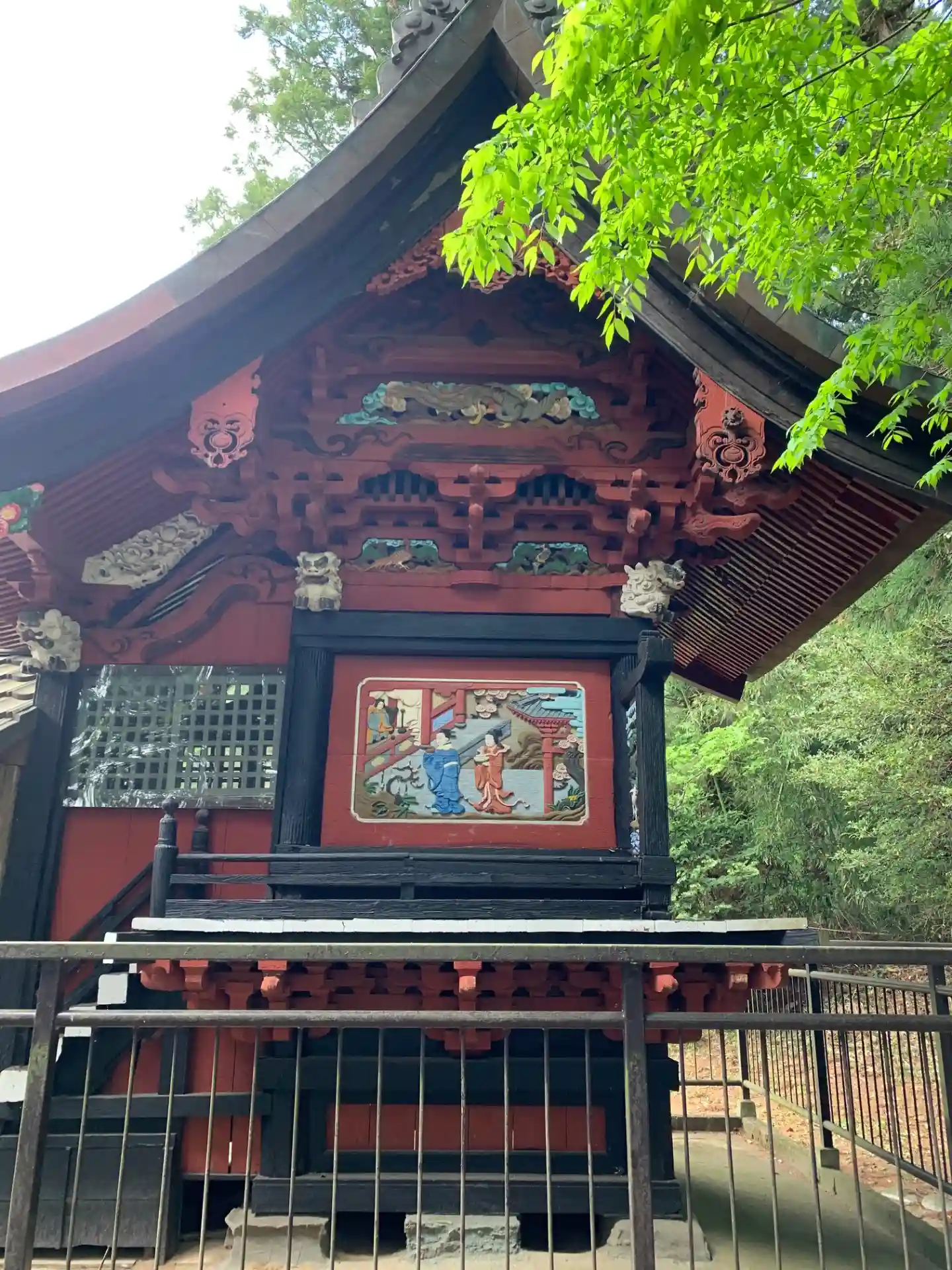本殿の極彩色の彫刻は側鷹稲荷神社や山倉大神に似ています。狛犬の石工は白鳥龍角。