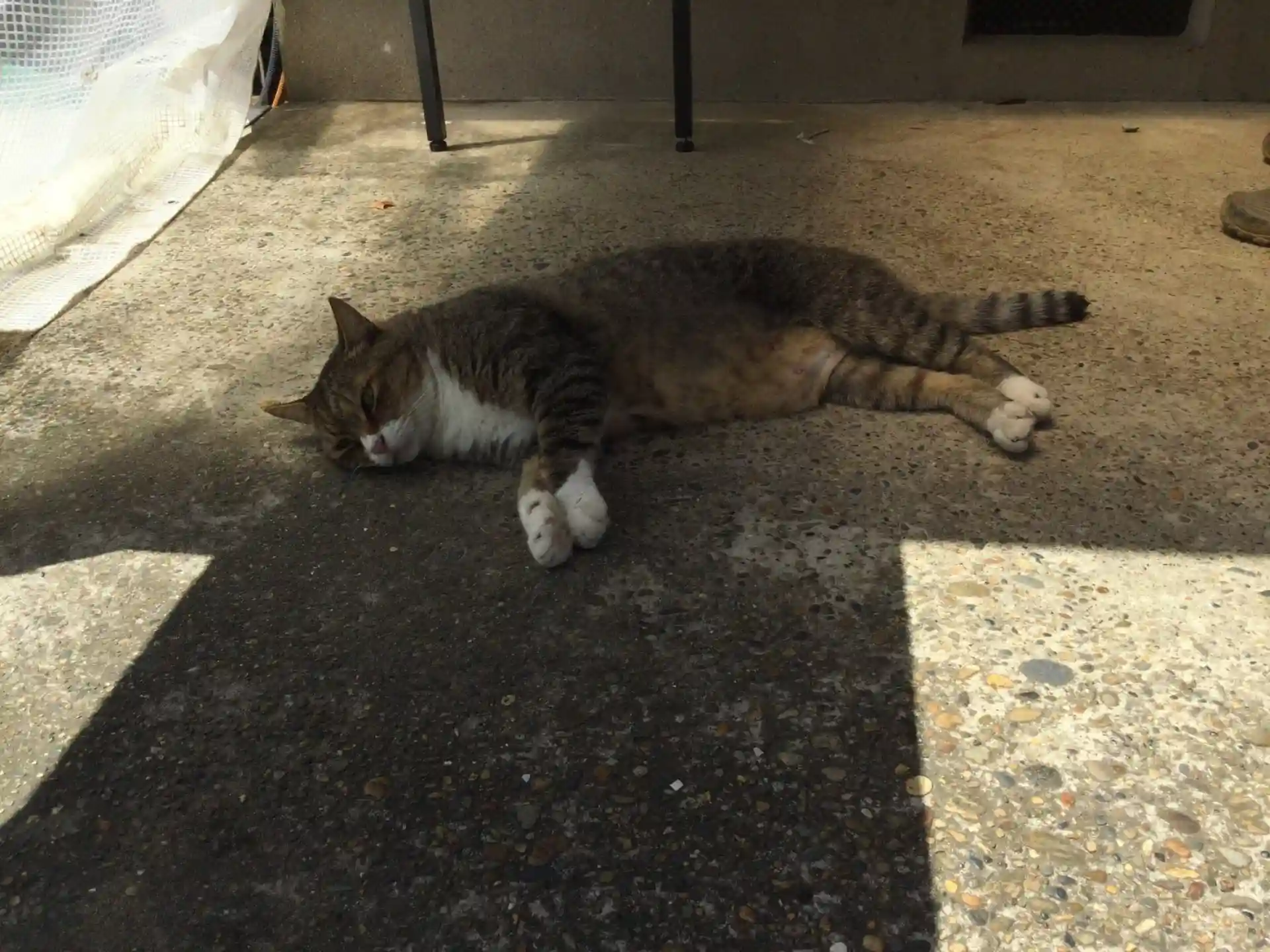 先の猫は帰る時もそこを動かず…