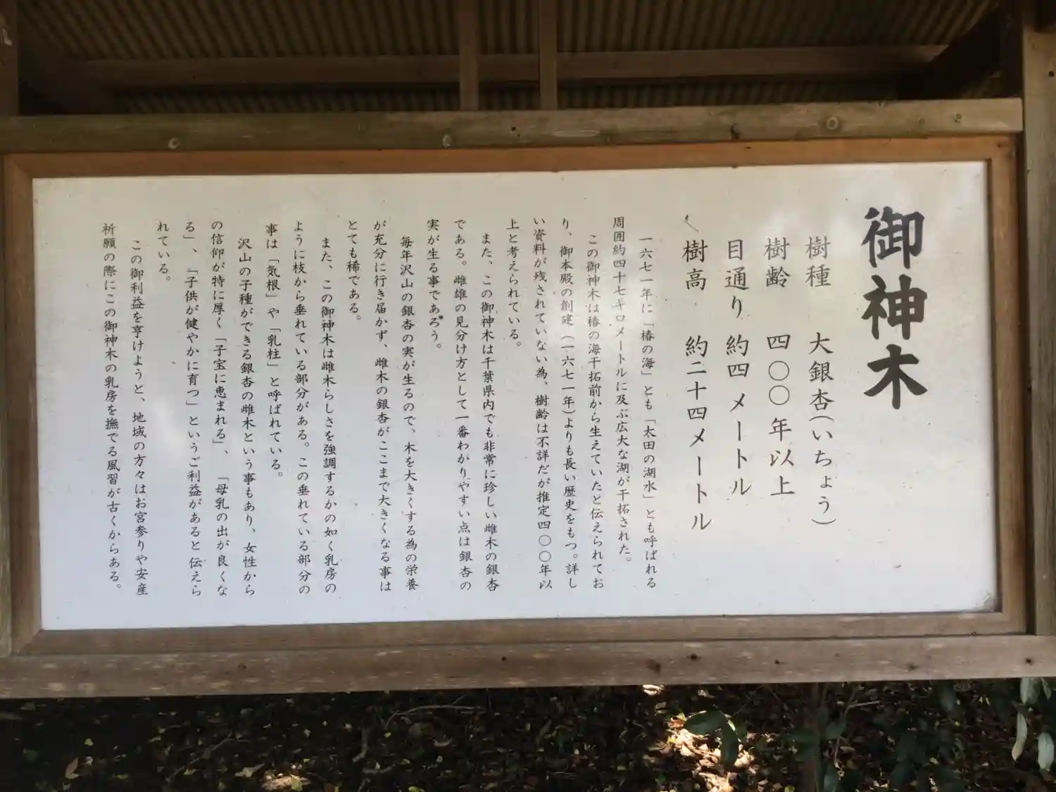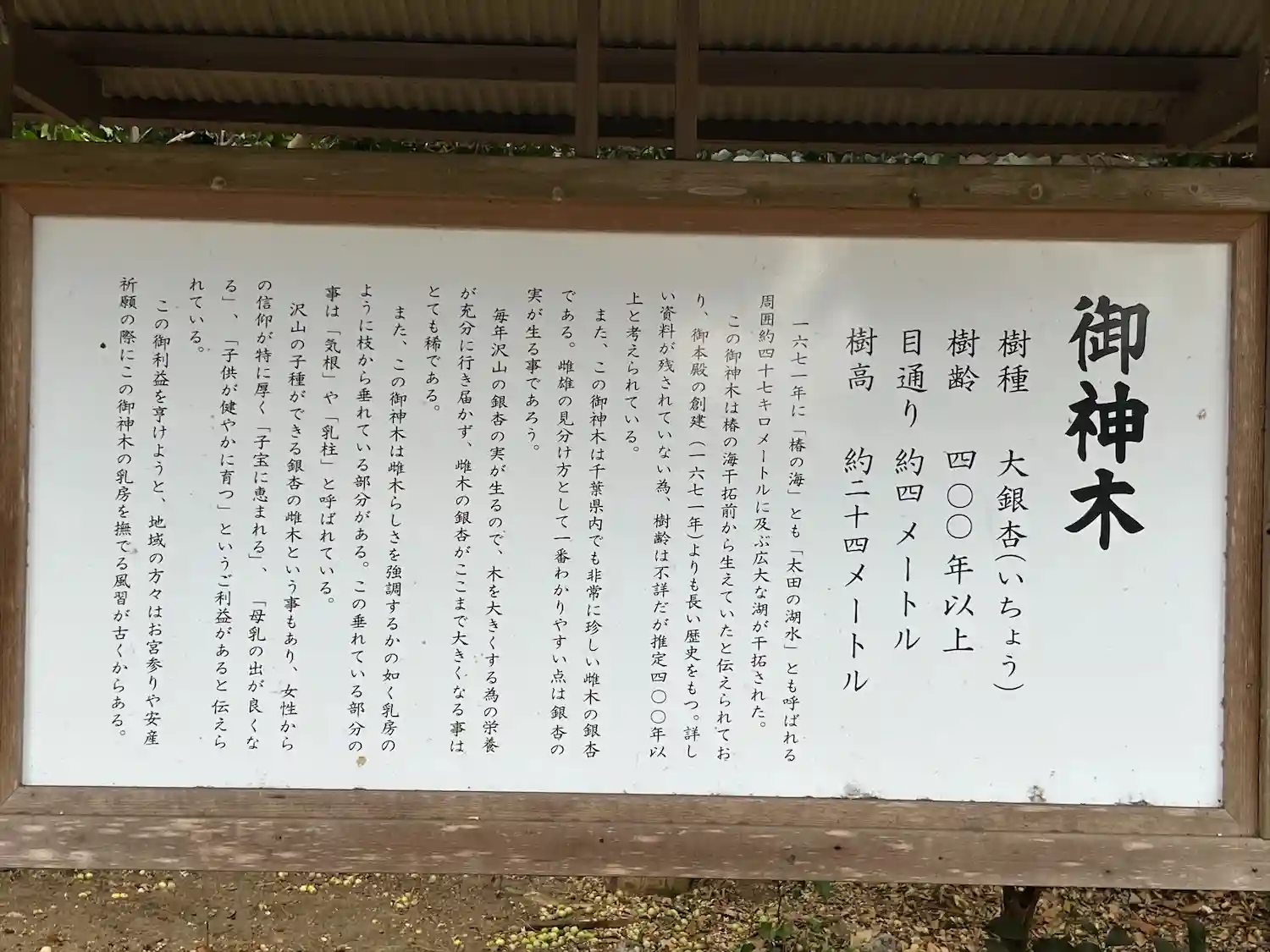御神木の銀杏の木。銀杏が沢山落ちていました。