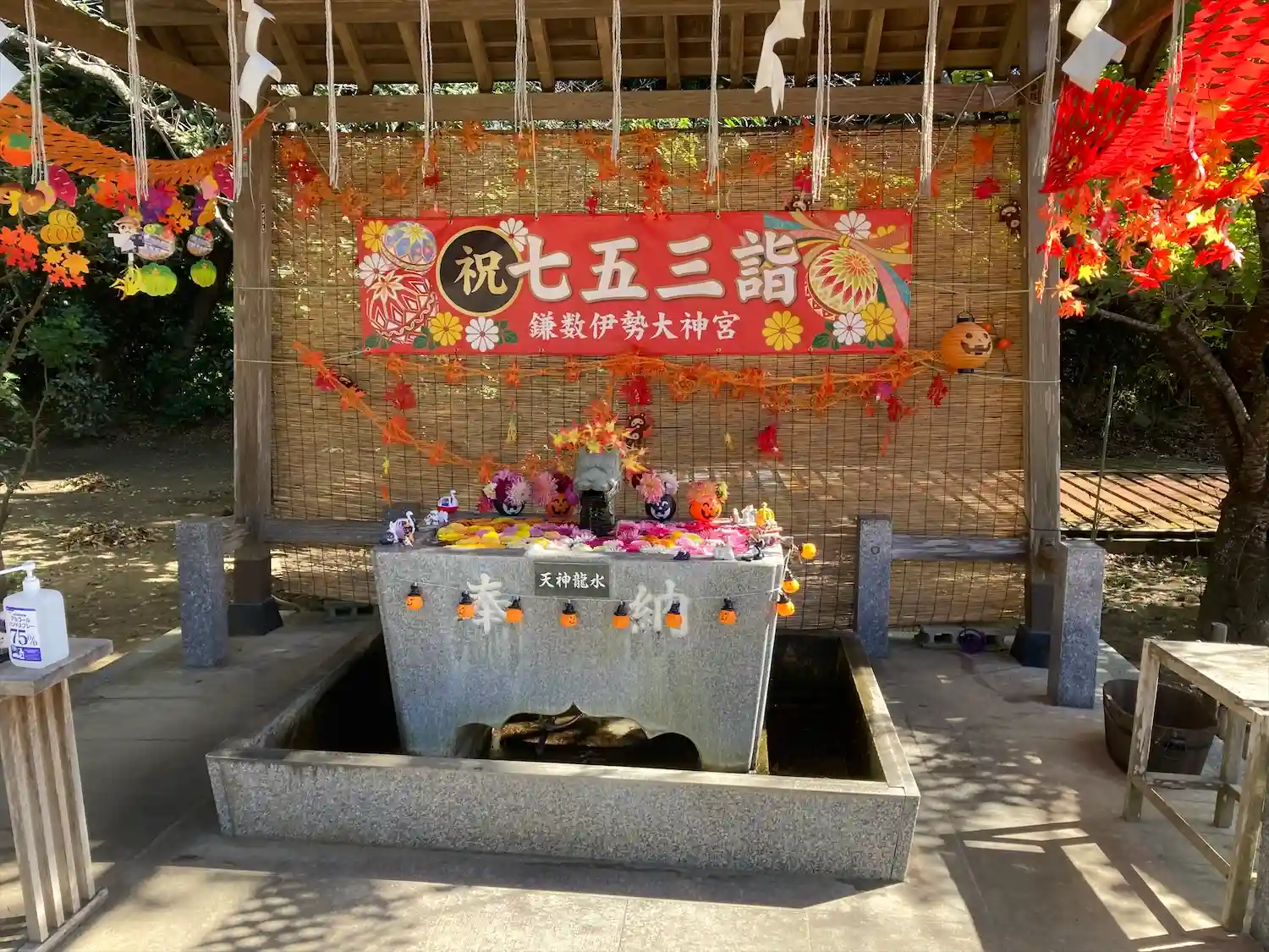 本日がハロウィンのため手水舎がハロウィン仕様になってい…