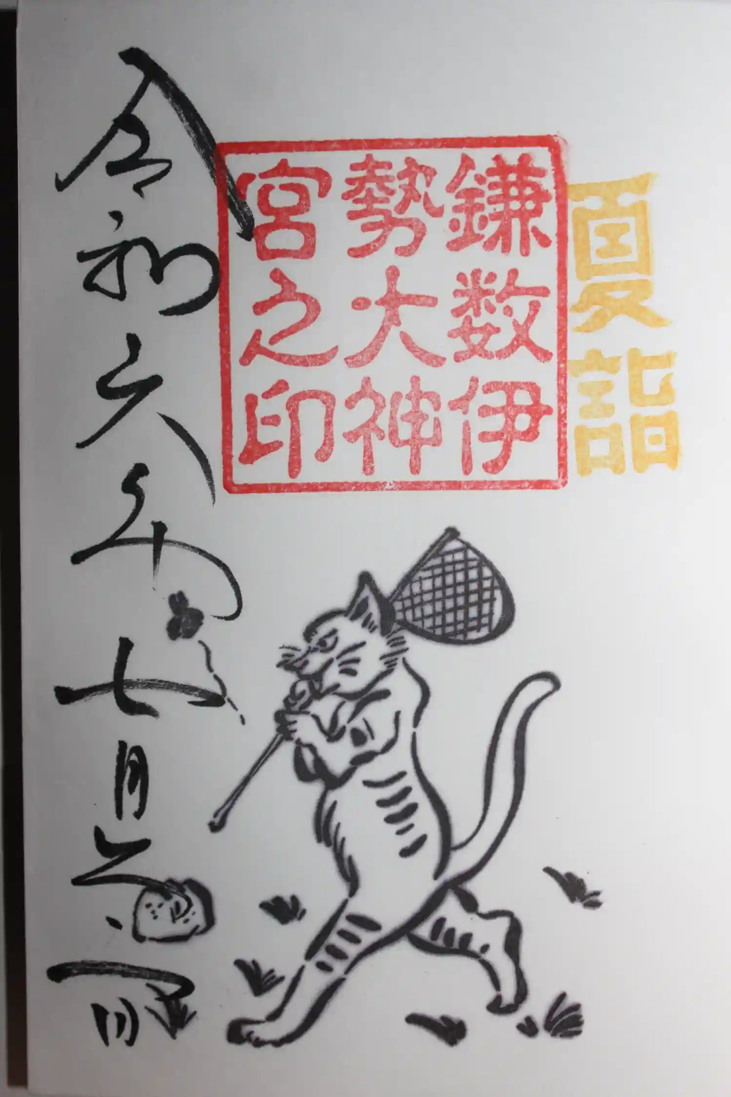 四社巡り御朱印(鳥獣戯画・猫)を拝受しました。