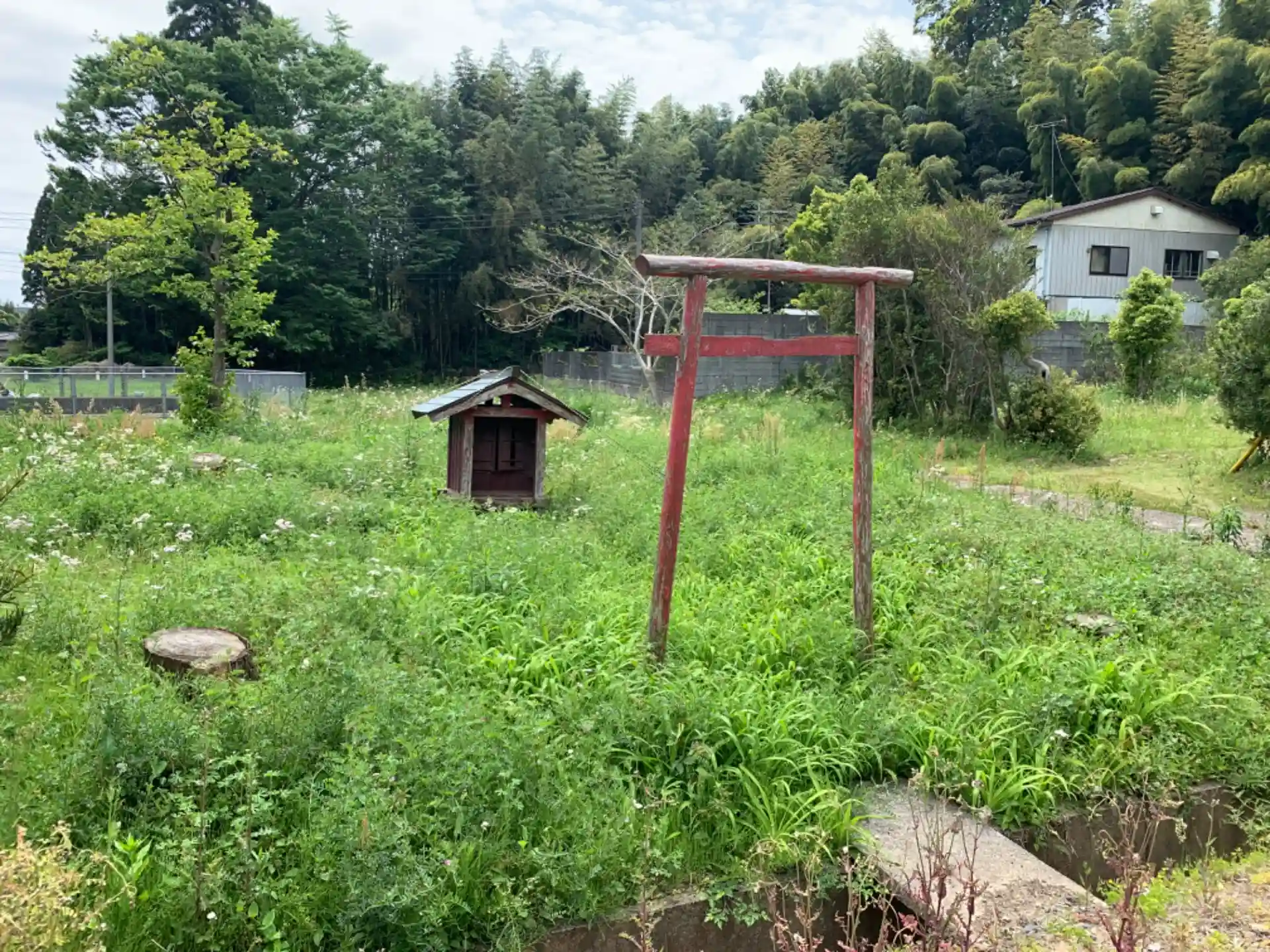 蓮華寺の向かいにある祠。以前は木々に囲まれていたようですが現在はご覧の通り、切り株のみがあります。