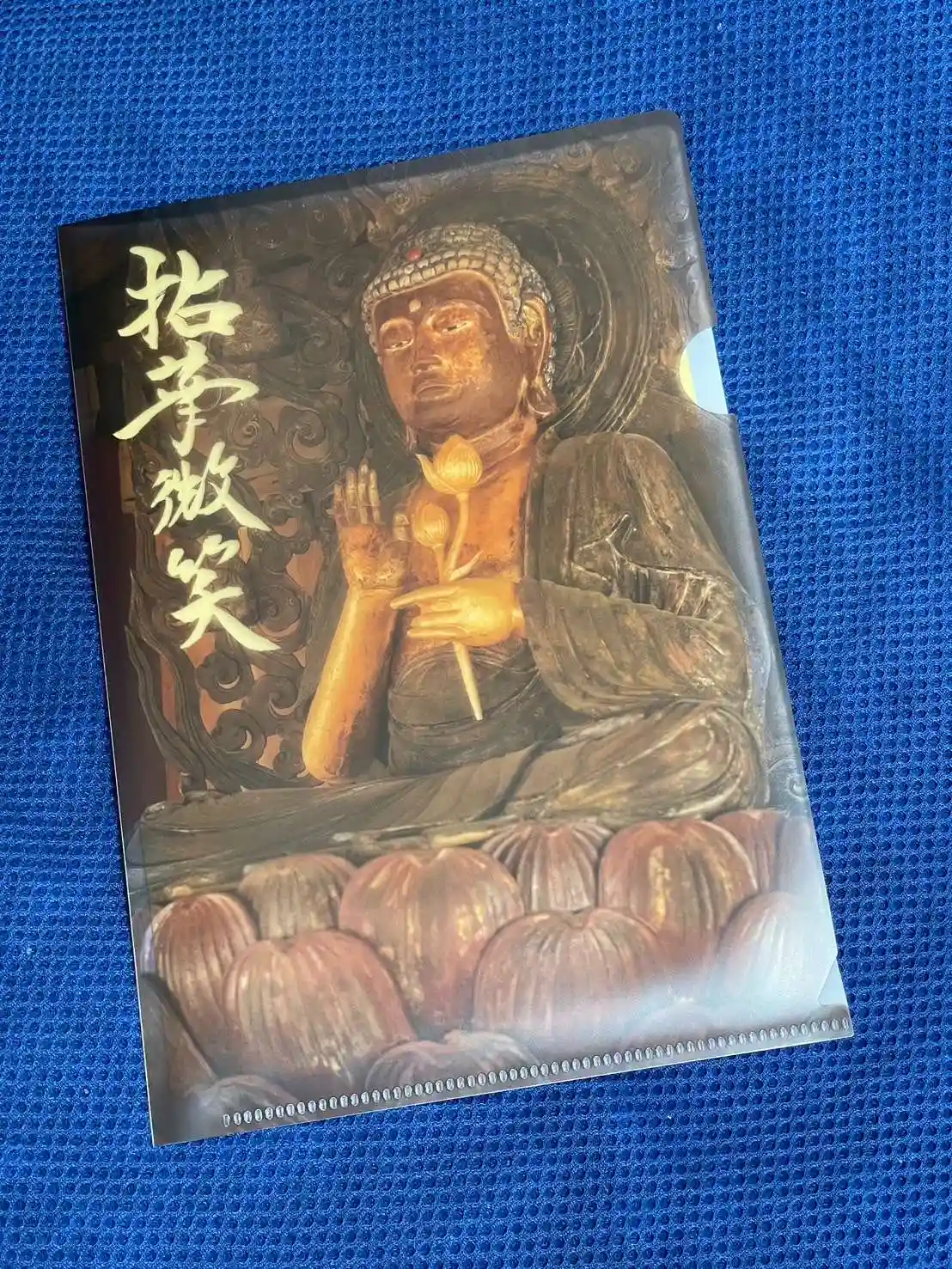 花を持って微笑んでいるので「拈華微笑(ねんげみしょう)」と言います。