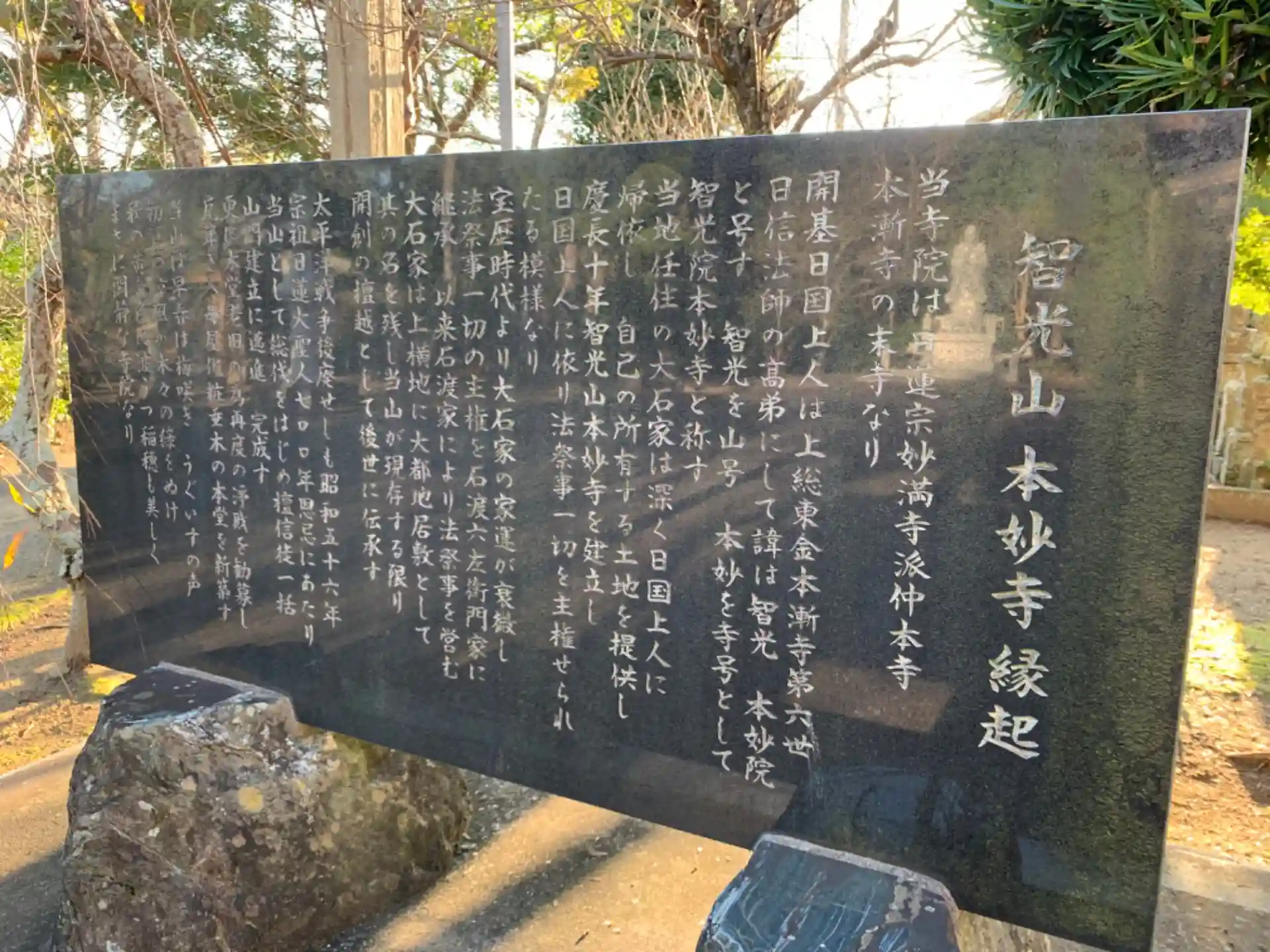 日国という僧が開基したお寺。境内にピカピカの日蓮像があります。