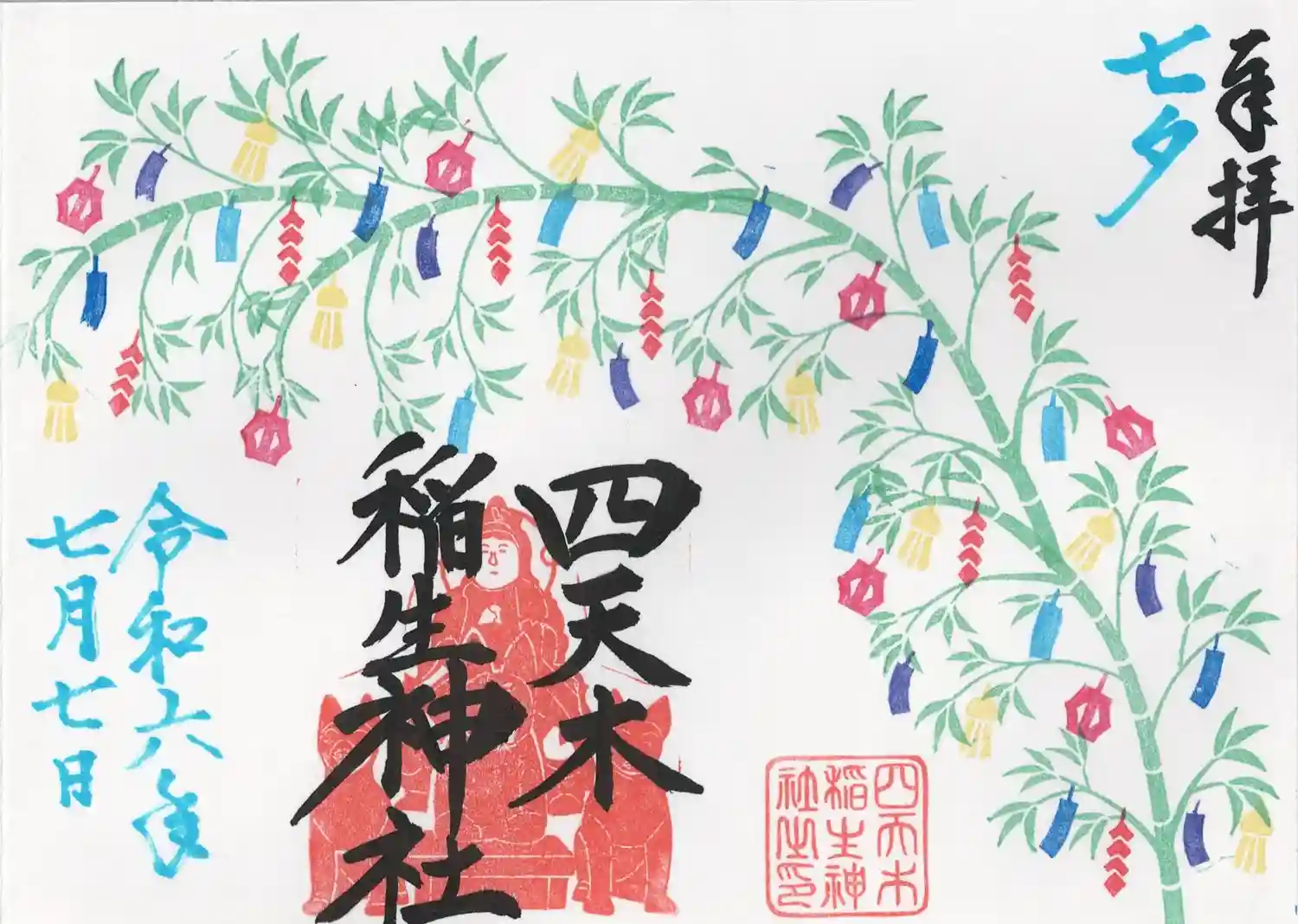 七夕飾りと豊受姫命様の御朱印