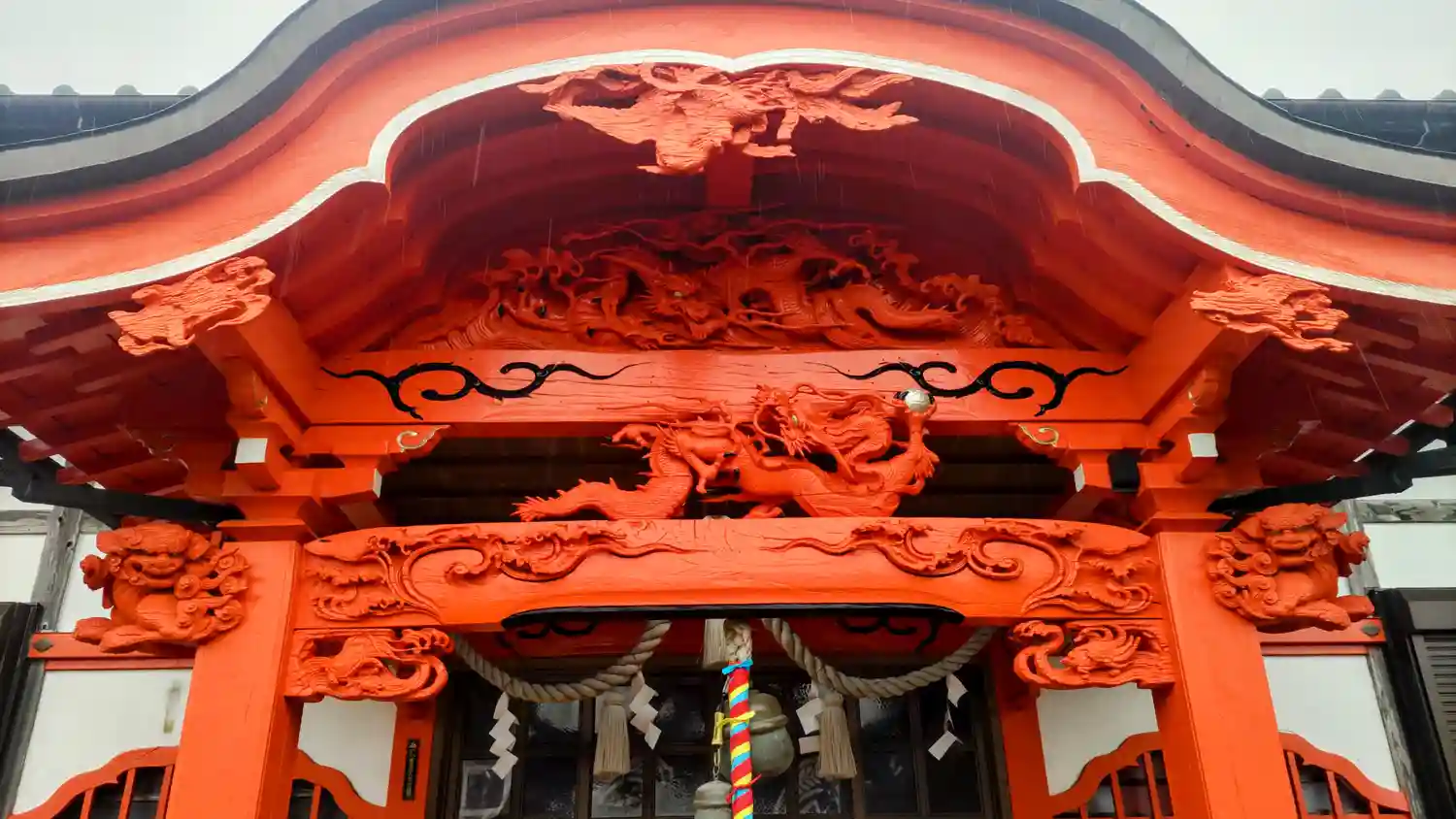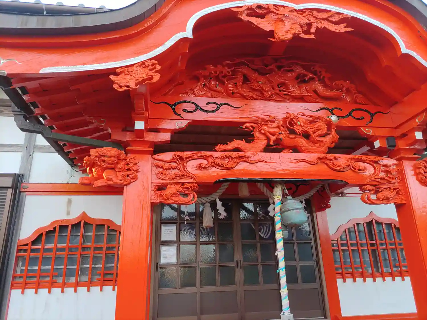比較的大きめの稲生神社が近隣にもあります。茅の輪くぐりをやっていたようでした。真っ赤に塗られた彫刻…
