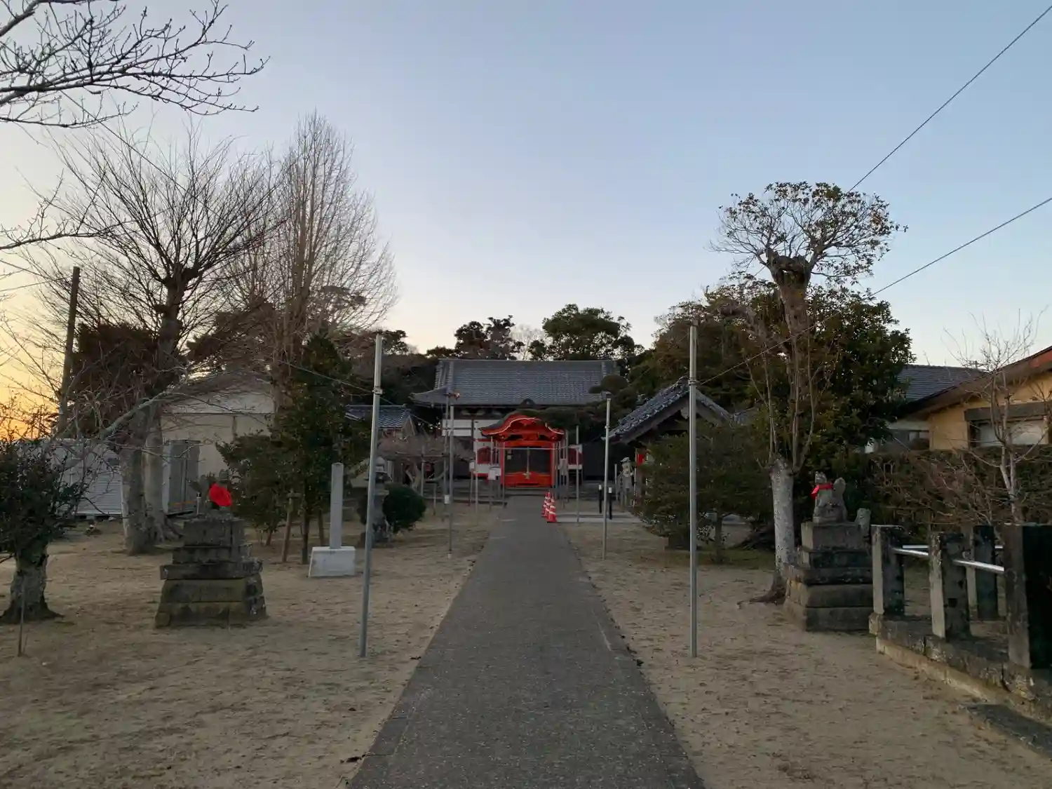 神社手前に舗装された駐車場があります。