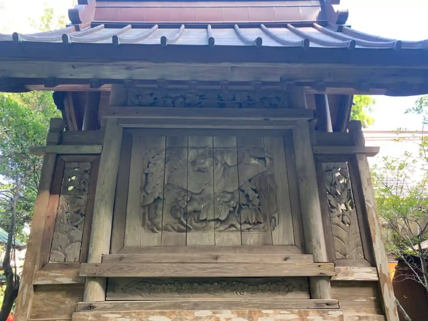 古びた趣のある石段の先はちょっと長め。玉垣の奥にある3つの本殿はそれぞれ素晴らしい彫刻で飾られてい…