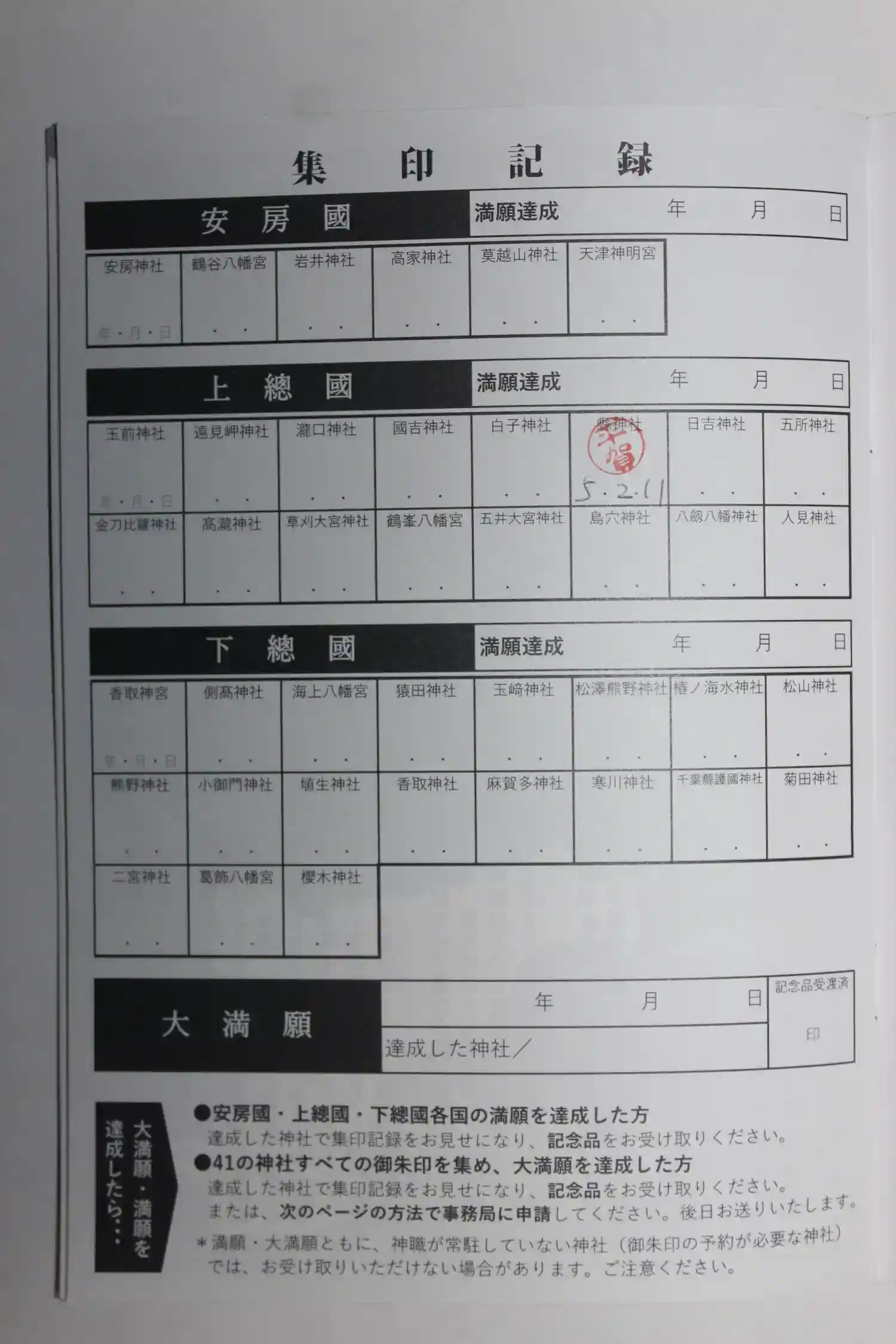 こちらが新たに始まった房総三國神社御朱印めぐりです。