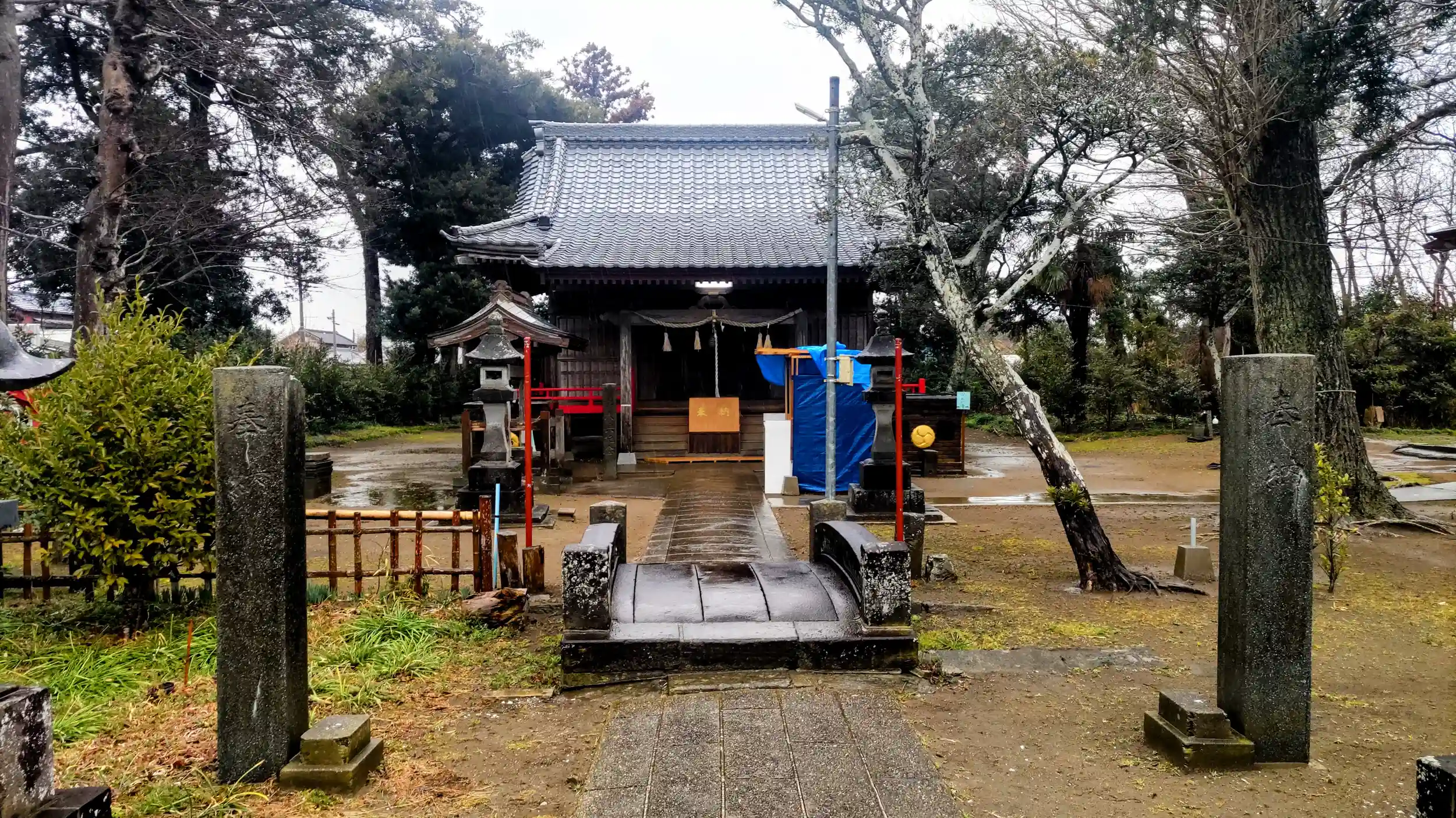 平坦な神社で、流れは跨いでいないものの、拝殿手前に石の橋があったのが印象的でした。