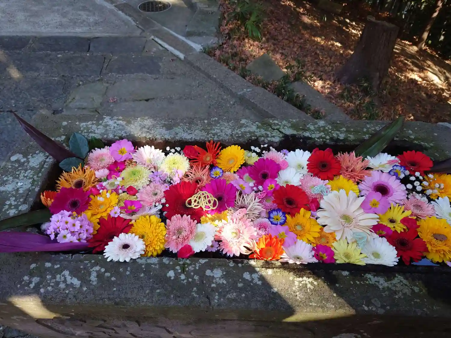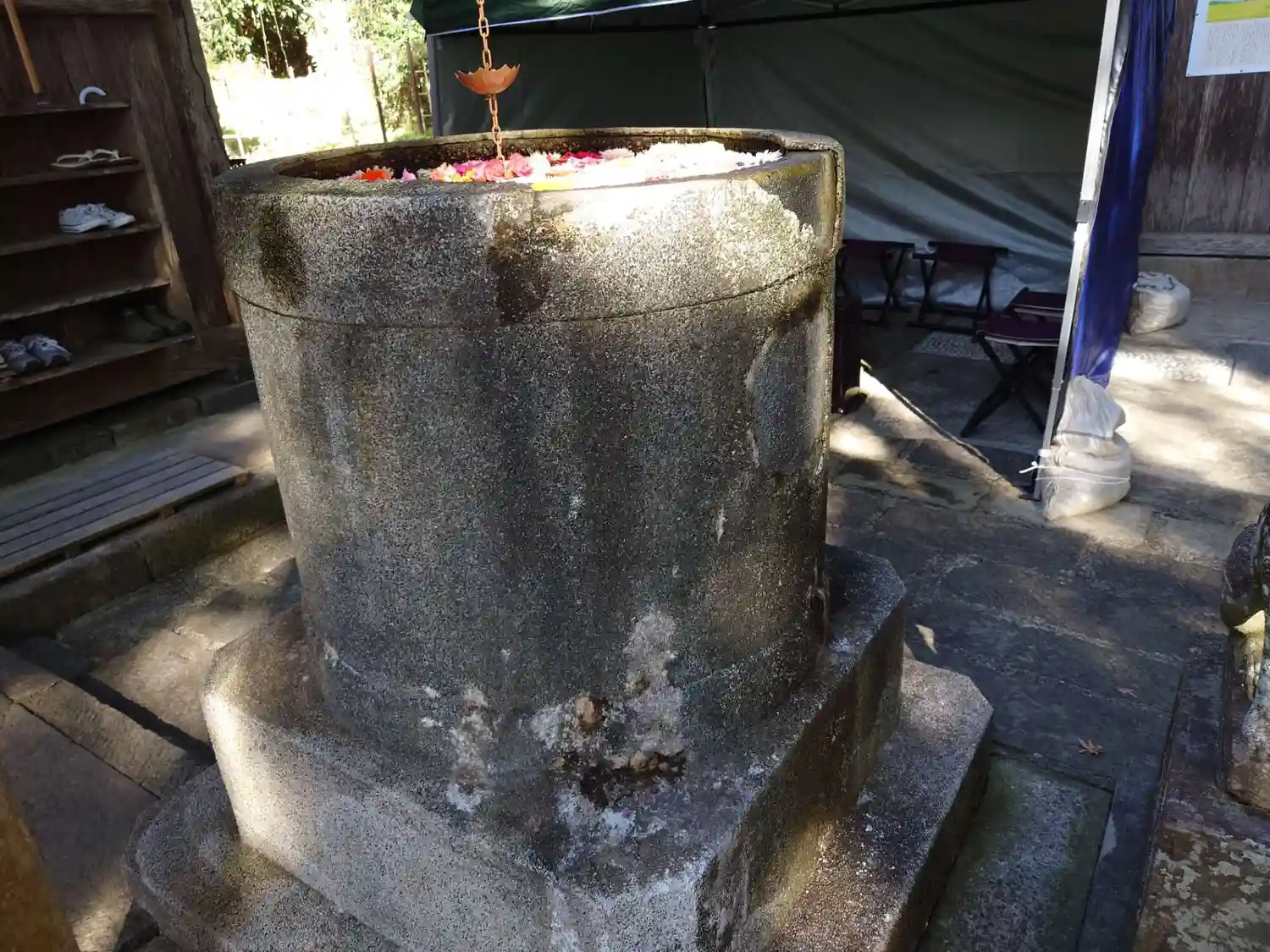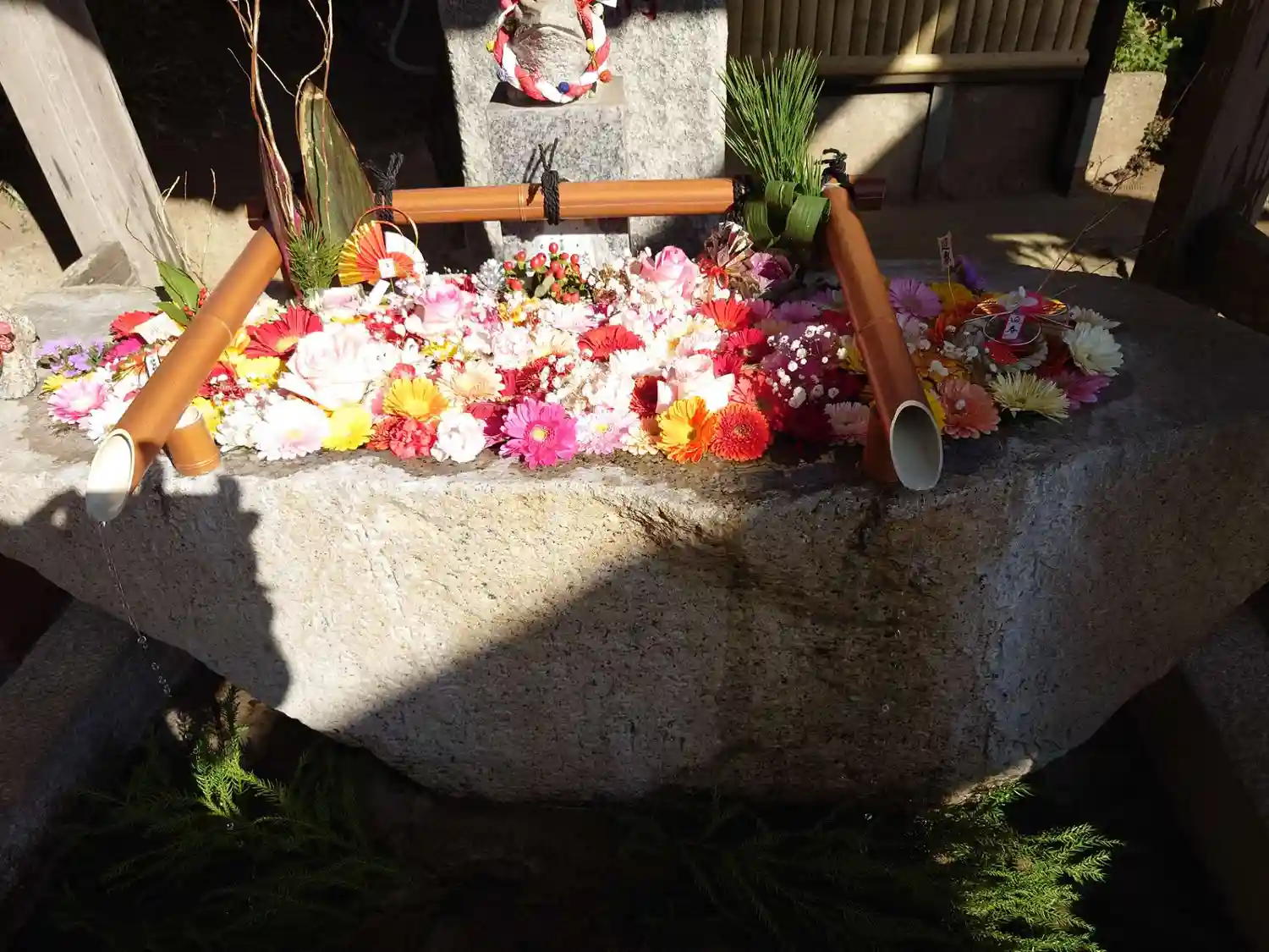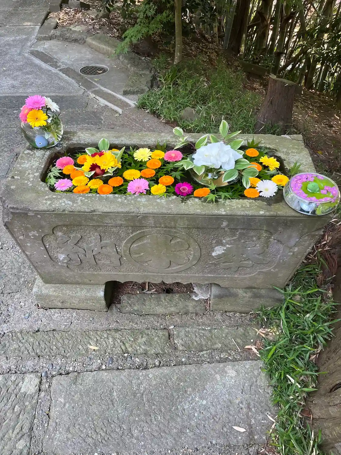 宝永五年(1708)奉納の手水鉢は素敵な花手水になっています