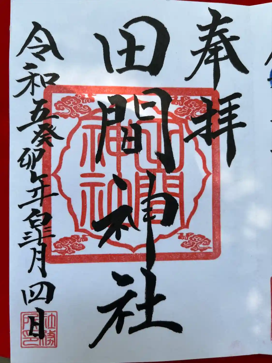 千葉県東金市の田間神社で季節の御朱印をいただきました。