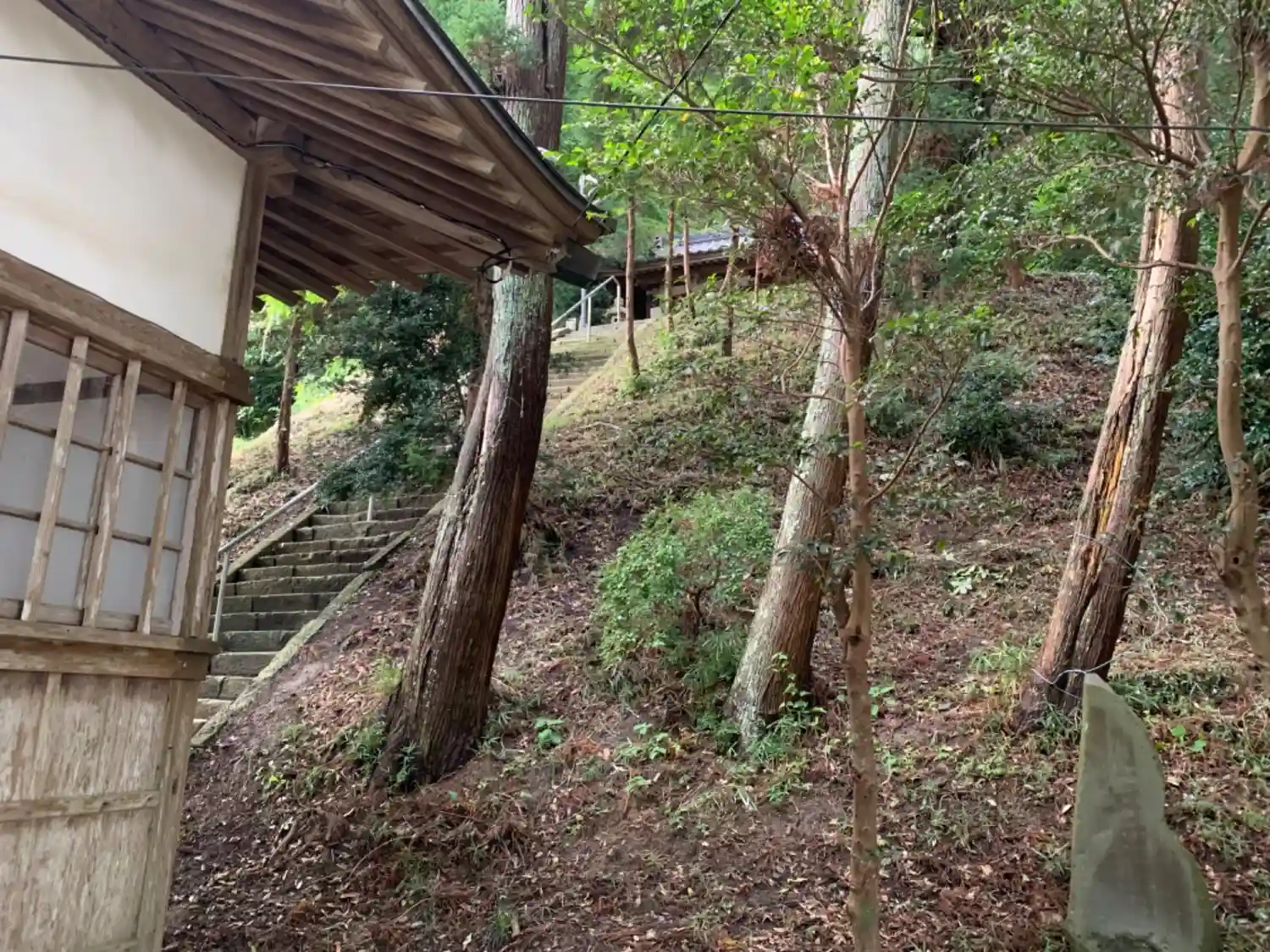 細い裏路地にある神社。社殿の裏に石段が隠れており、さらに登るともう一つ社殿があります。展望はありま…