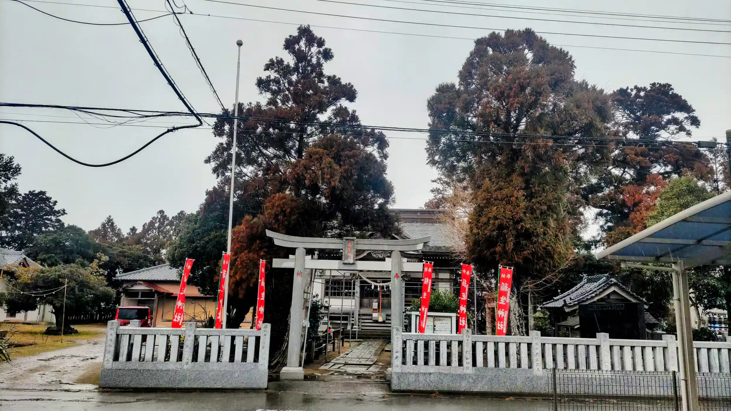 鳥居の左手から入って境内に駐車できます。