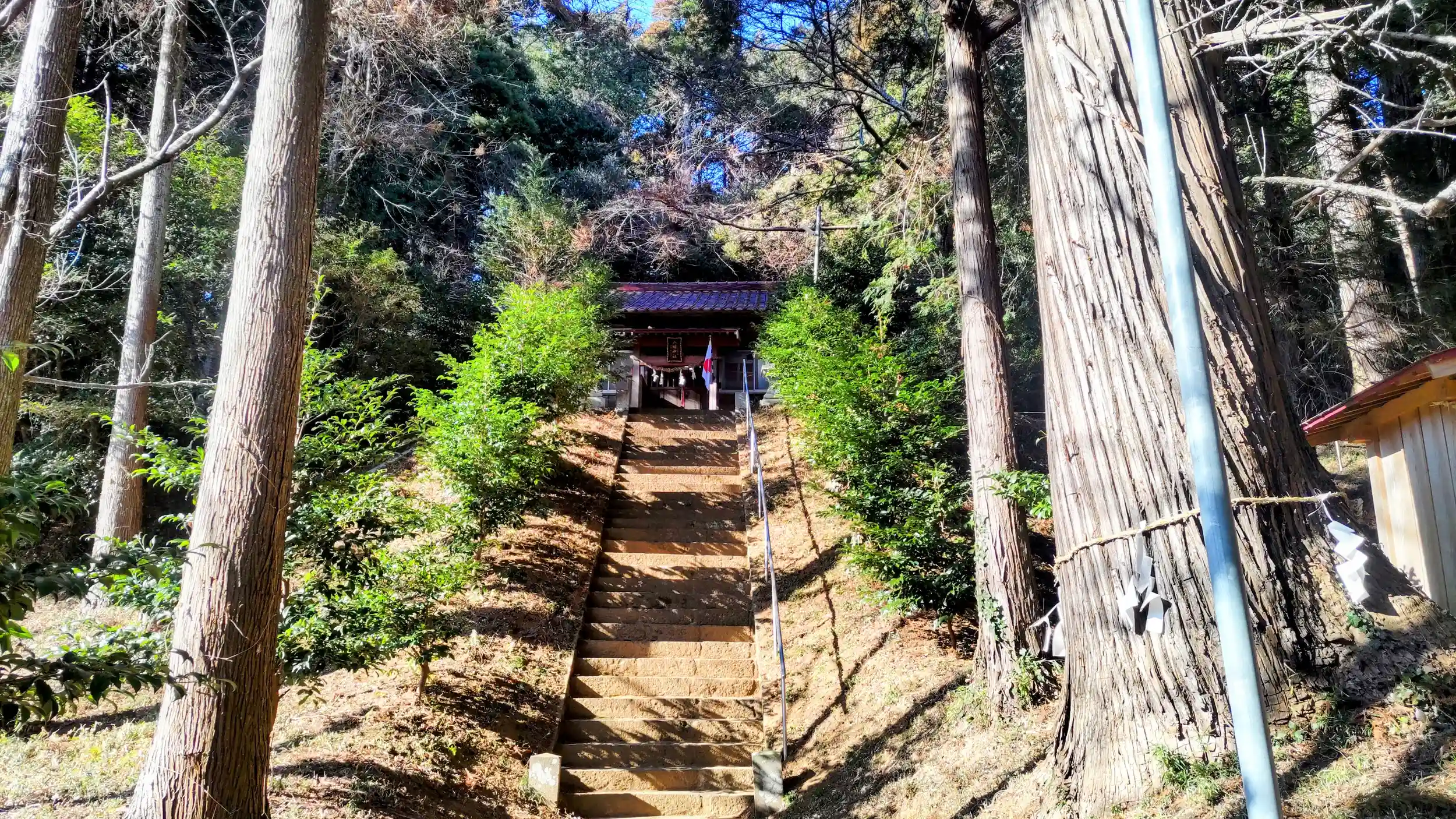 鳥居の手前に白い砂利を敷いた駐車場があります。