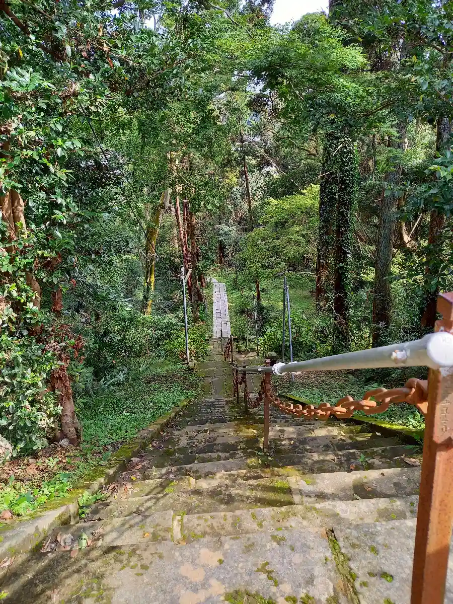 住宅地のはずれにひっそり建つ神社。歴史を感じる石段と鳥居脇の杉の大木が素敵です。お賽銭を入れる場所…
