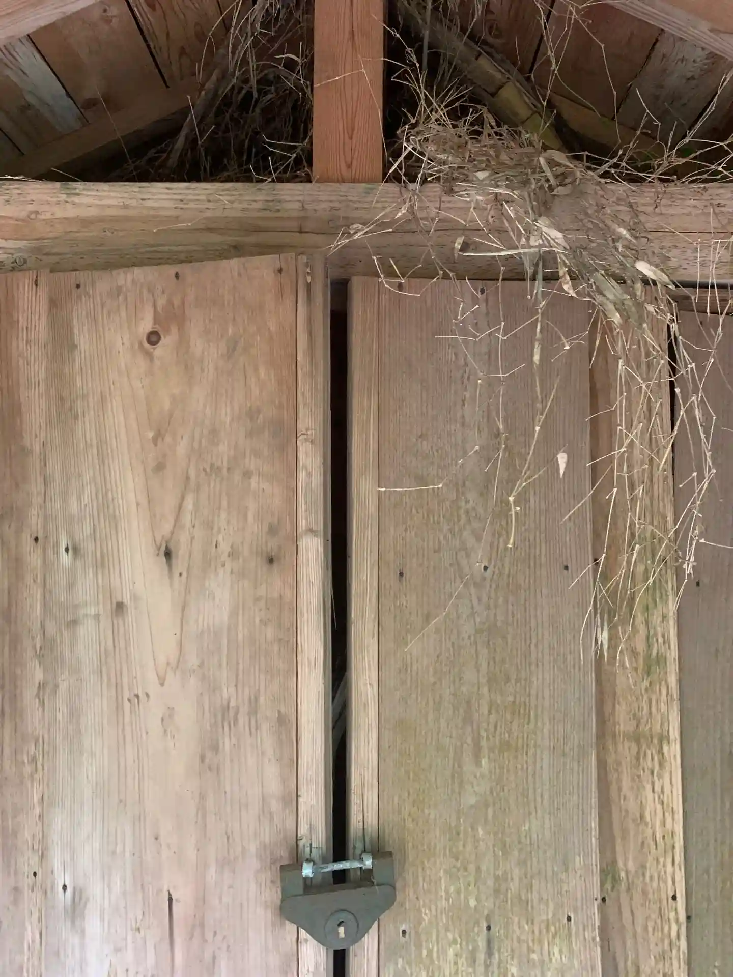 民家の柵の外にある小さなお社。中から植物が溢れていました。