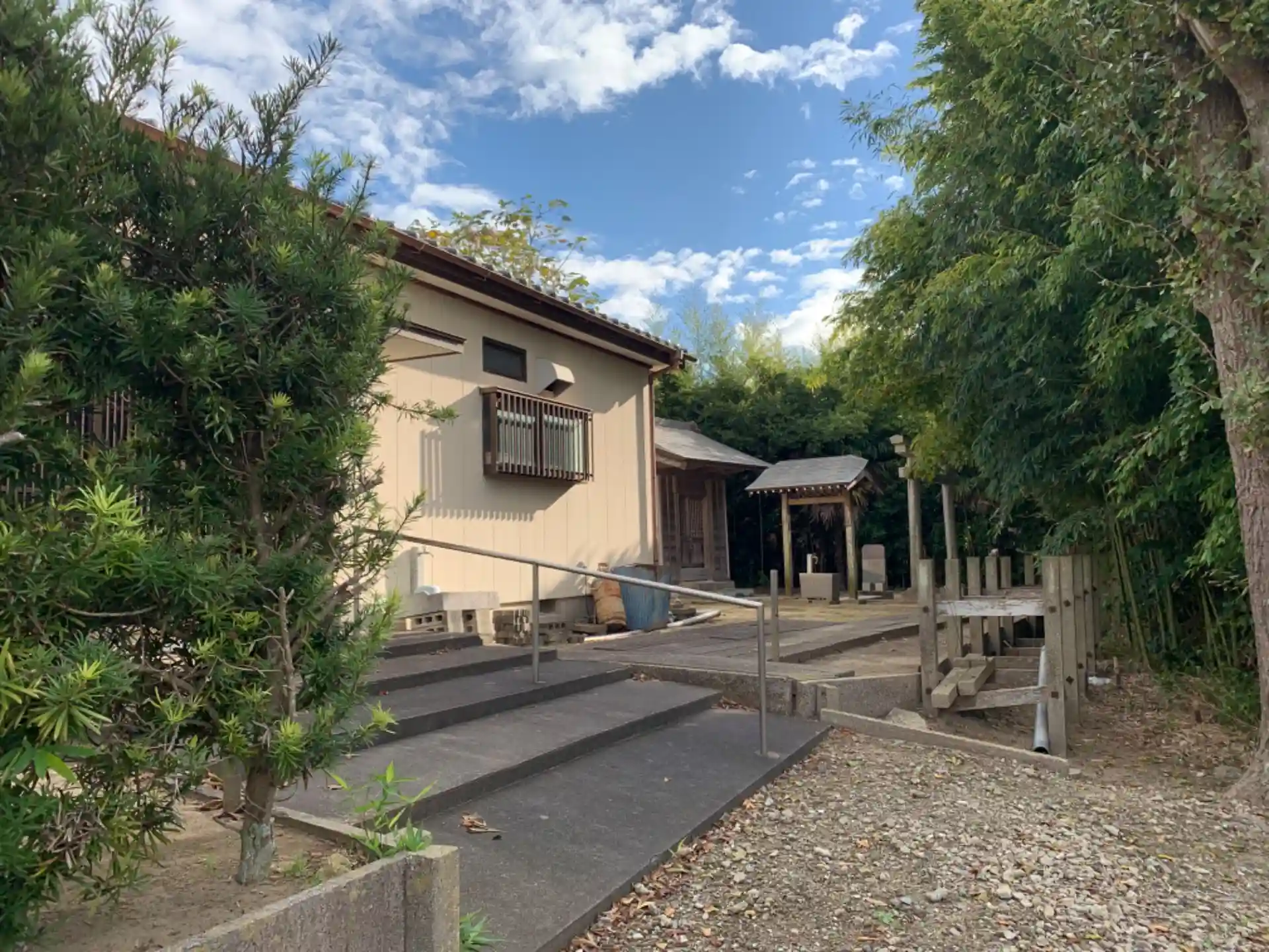 用水路のある細い道の奥にある神社。手前に集会所には籠居堂という名前がついており、講かなんかで使う用途が意識されているようでした。